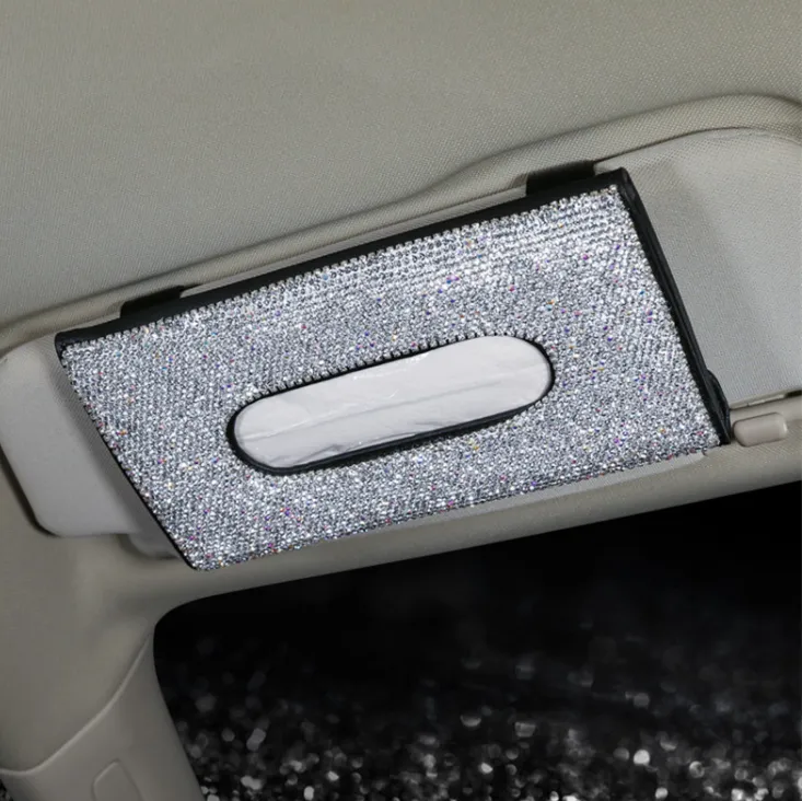 Bling Crystal PU Leather Car Tissue Box – Sun Visor Hanging Style