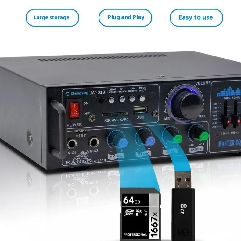Equipped with Bluetooth connectivity, USB disk support, and radio function, this amplifier ensures seamless music playback from multiple sources. With an impedance range of 4β8Ξ©, itβs compatible with a wide variety of speakers, offering flexible setup options for any audio environment.