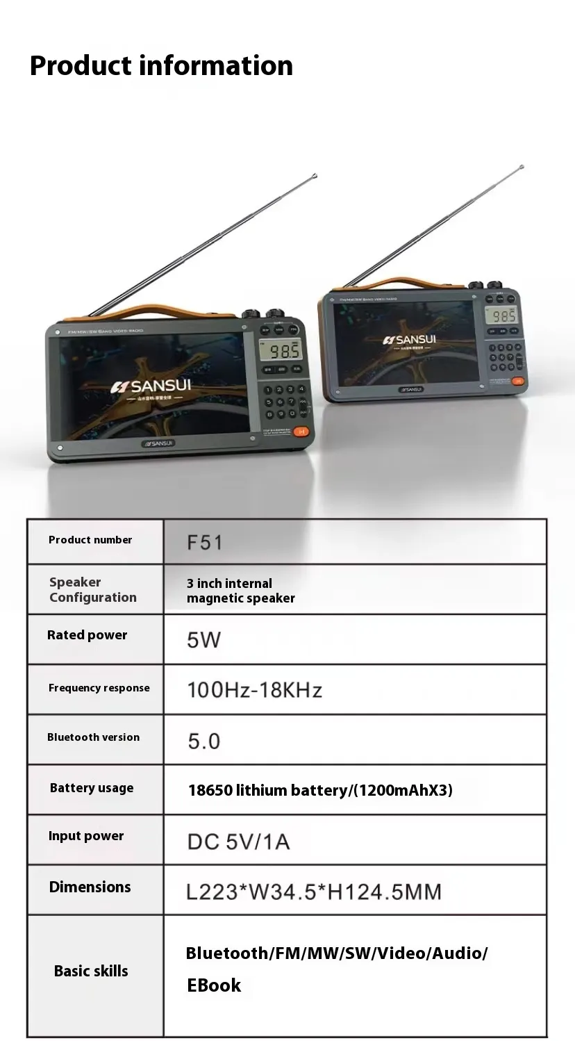 Equipped with a 5W high-quality speaker and a wide 30Hzβ15kHz frequency range, this portable device delivers rich stereo audio and crisp clarity. Its Bluetooth function and card insertion support make it versatile for playing music, listening to radio channels, or enjoying videos.