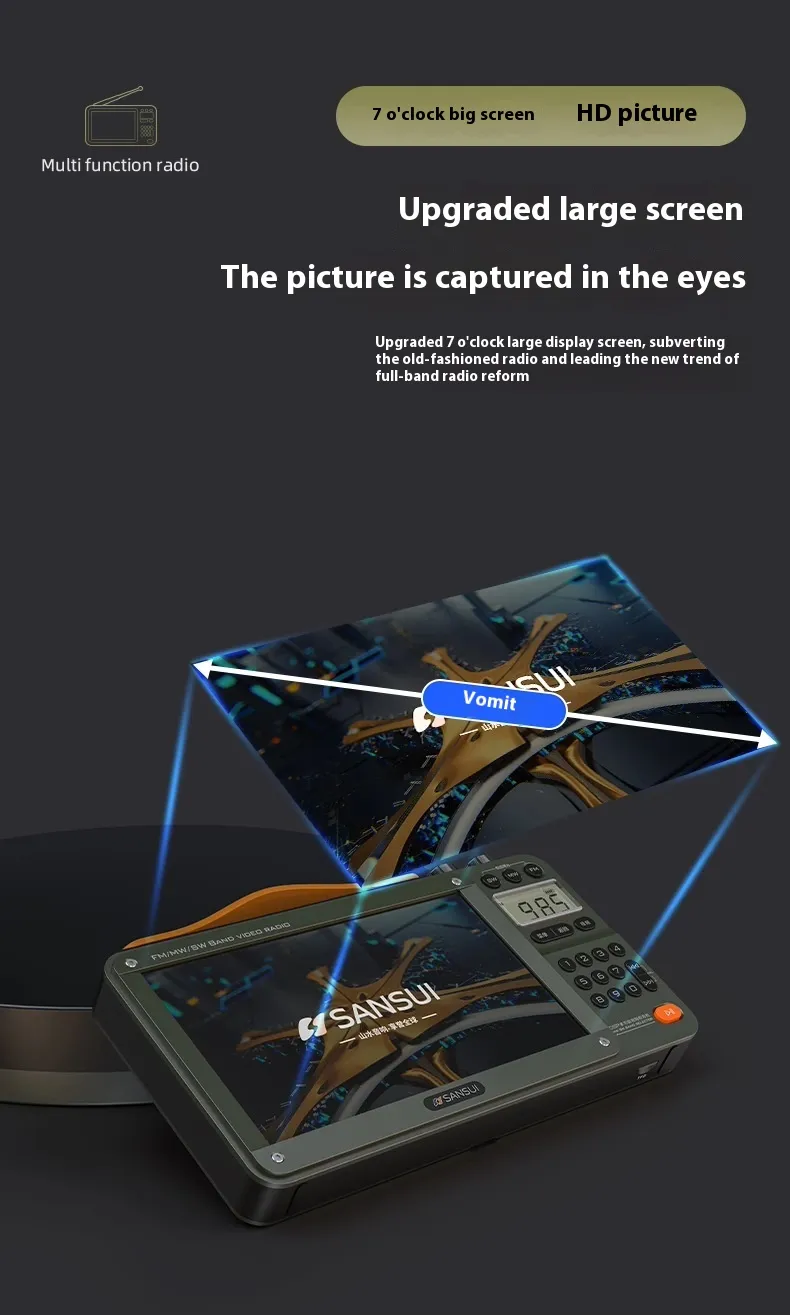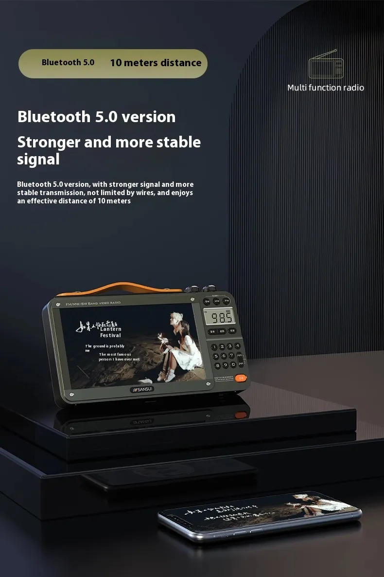 Experience music, radio, and video in one device with this Bluetooth-enabled full band radio speaker, specially designed for home and elderly users. With its simple controls and clear sound, it offers an enjoyable and convenient entertainment experience for all ages.
