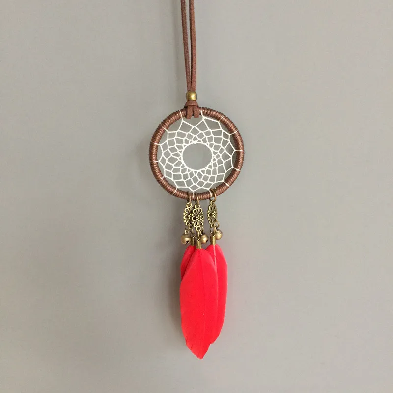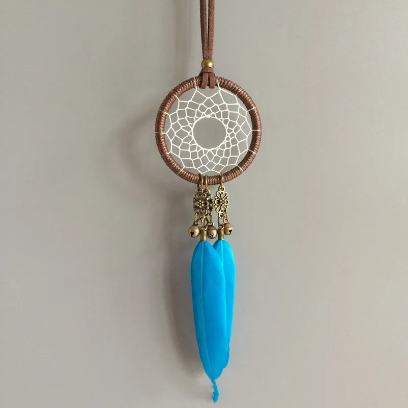 Elevate your vehicle's interior aesthetic with this beautiful Bohemian Feather Car Pendant, a unique and stylish addition to your collection of car accessories. Designed to hang elegantly from your rearview mirror, this charm features three delicate, artfully arranged feathers, symbolizing freedom and lightheartedness. The design incorporates a subtle, decorative ring with a diameter of $5\text{ cm}$, perfectly sized to be noticeable without obstructing your view. Crafted for those who appreciate handmade touches, this pendant brings a touch of nature-inspired peace and personality to your daily drive.