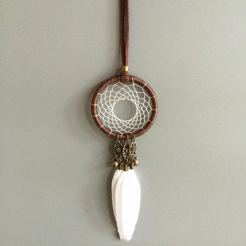 Elevate your vehicle's interior aesthetic with this beautiful Bohemian Feather Car Pendant, a unique and stylish addition to your collection of car accessories. Designed to hang elegantly from your rearview mirror, this charm features three delicate, artfully arranged feathers, symbolizing freedom and lightheartedness. The design incorporates a subtle, decorative ring with a diameter of $5\text{ cm}$, perfectly sized to be noticeable without obstructing your view. Crafted for those who appreciate handmade touches, this pendant brings a touch of nature-inspired peace and personality to your daily drive.