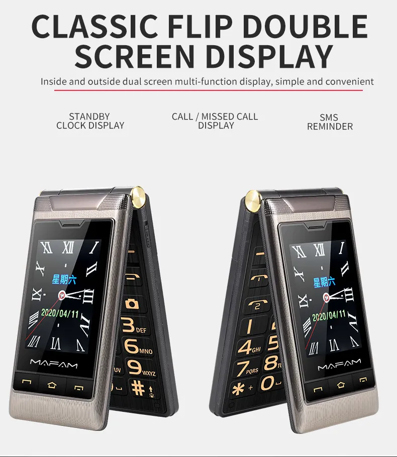 Cameland Dual Screen Flip Phone – 5900mAh, Elderly & Backup Use