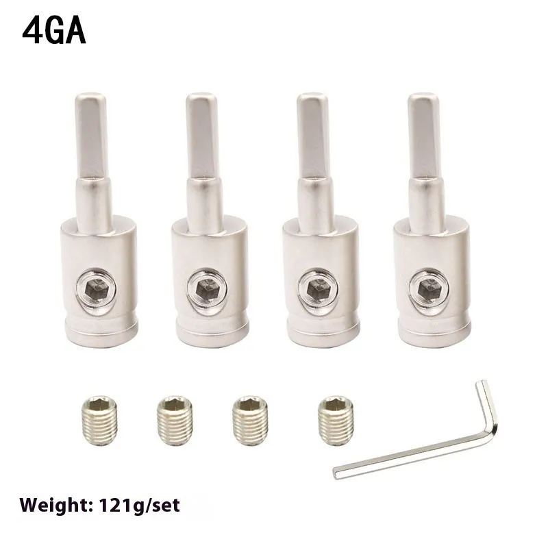 This car audio power terminal plug is designed to deliver clean and stable current transmission for vehicle amplifier setups. Built with a pure copper tailpiece, it ensures efficient energy flow to support powerful sound systems. Its secure connection design helps reduce signal loss and improves overall audio performance in both basic and advanced installations.