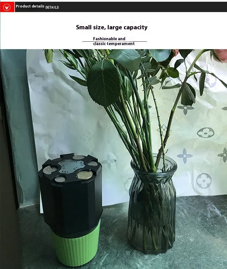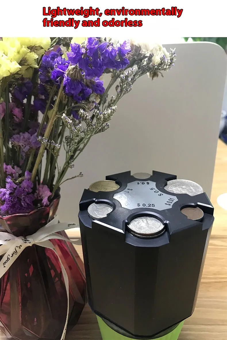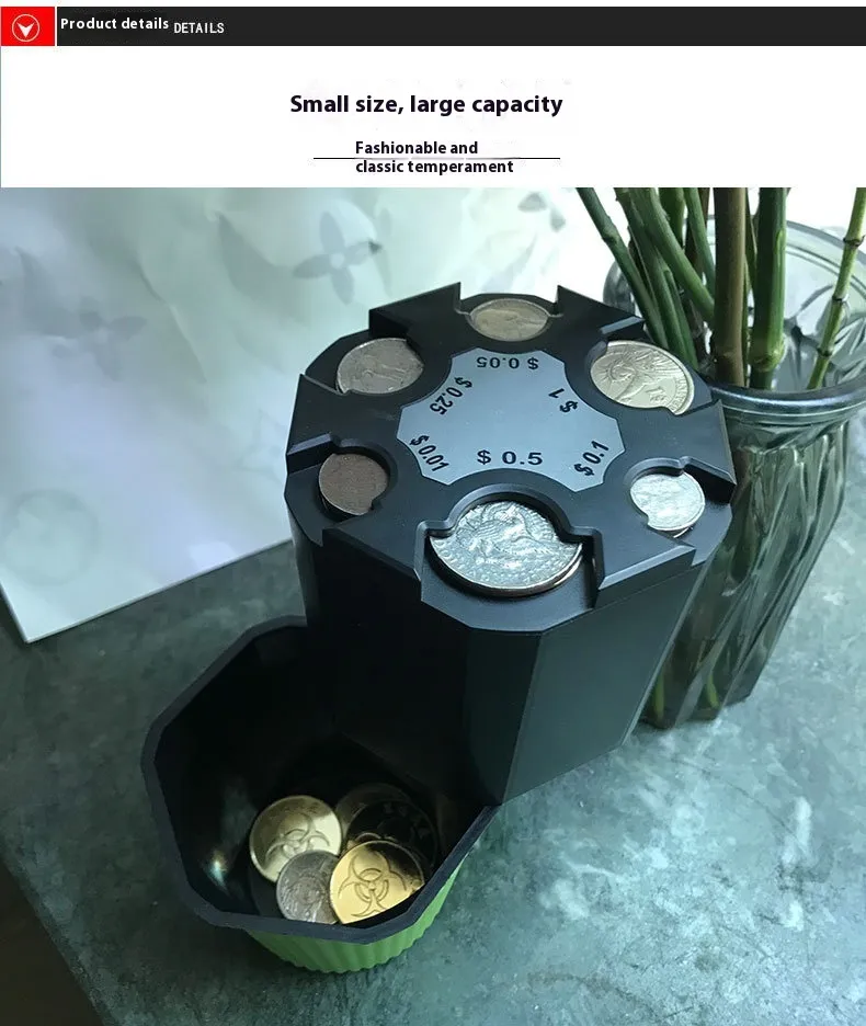 Compact and convenient, this coin bank measures 10 × 17cm and features six separate coin slots for easy counting and organization. Its lightweight design allows it to sit on a desk, shelf, or car dashboard while encouraging regular savings. The clear markings make it simple to track your coin deposits at a glance.