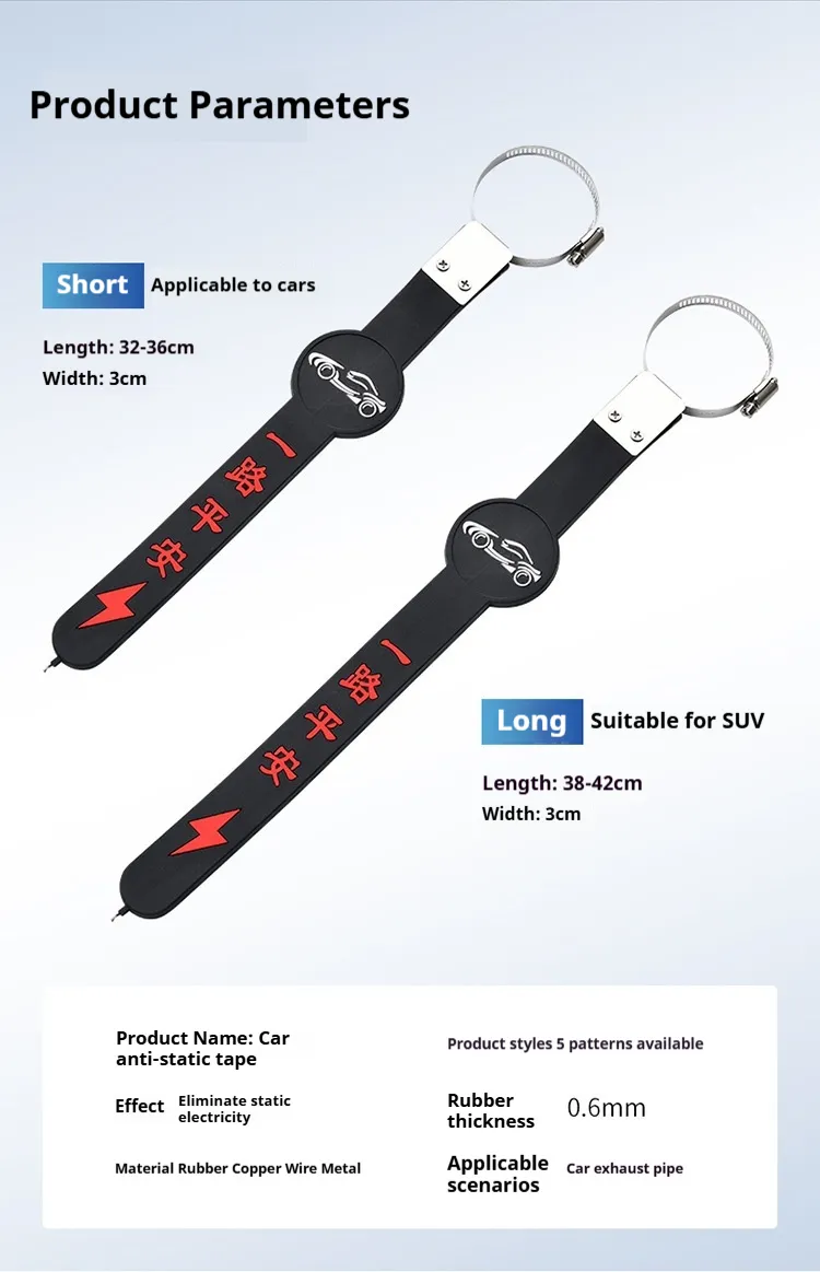 Made from durable PVC material, the ribbon is available in stylish designs like “Safe Travel” and “Camellia”, and comes in two sizes—short for cars and long for SUVs. It not only reduces static discharge but also adds a decorative touch to your vehicle’s rear end.
