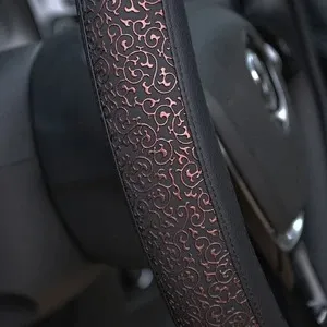 Carved Ice Silk Leather Steering Wheel Cover – All-Season Fit