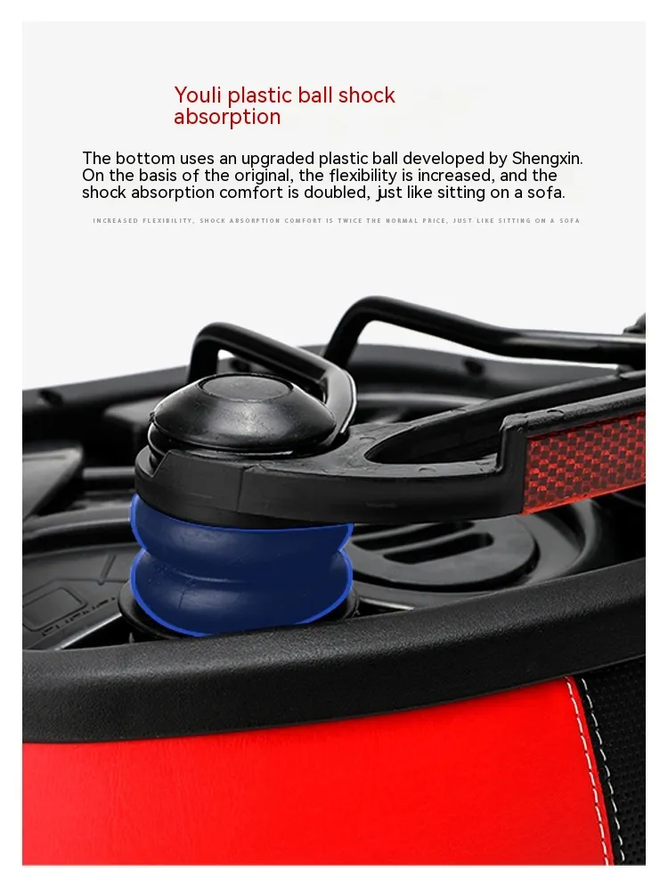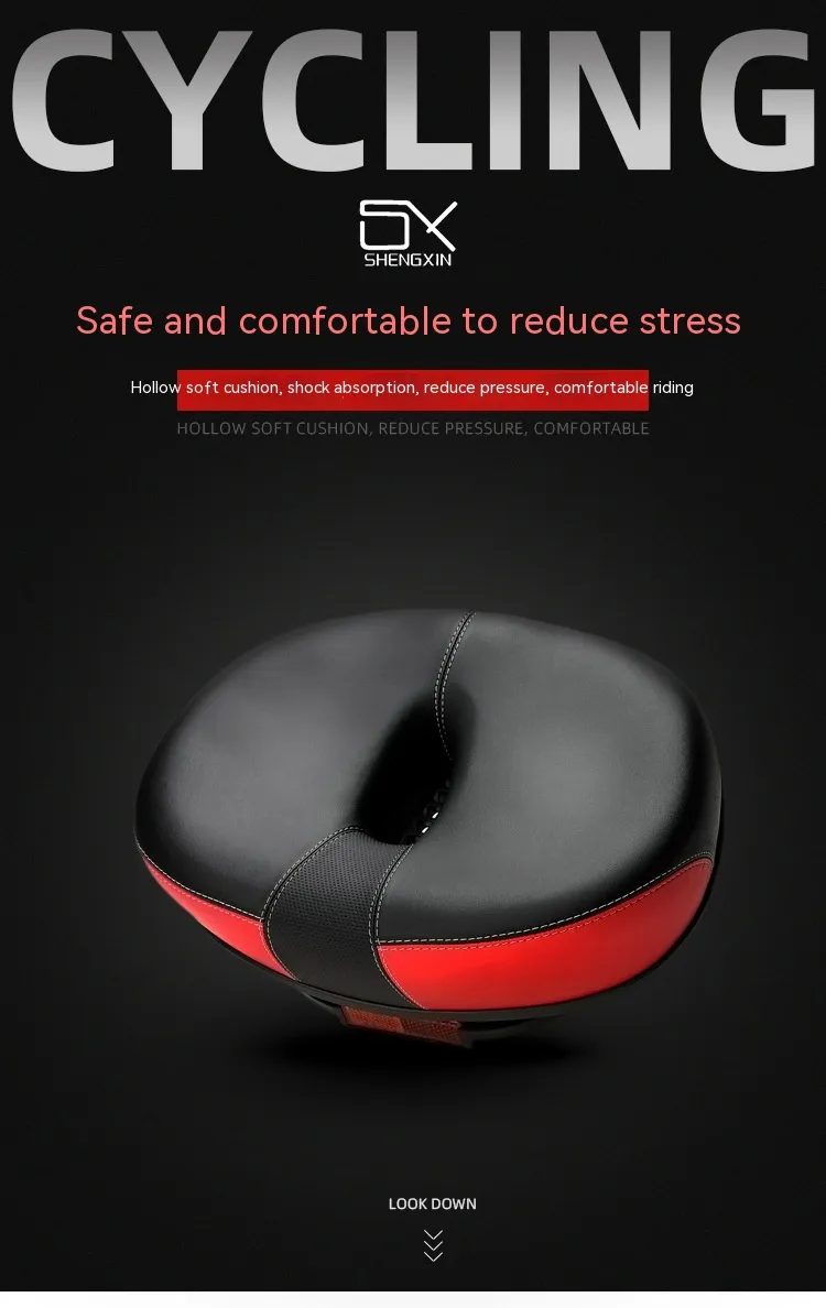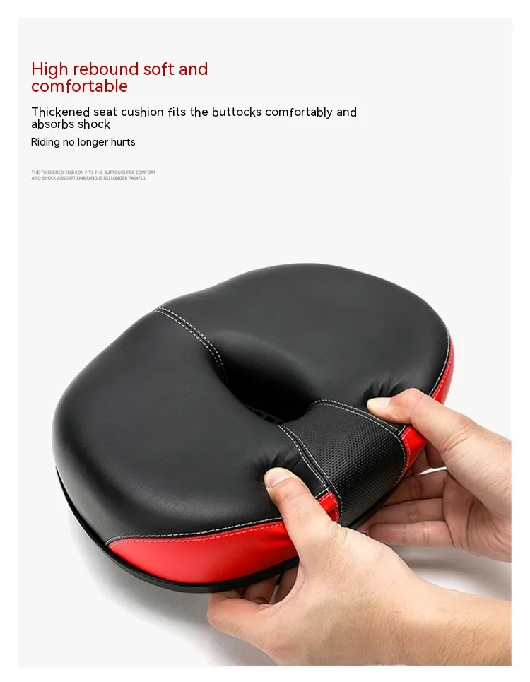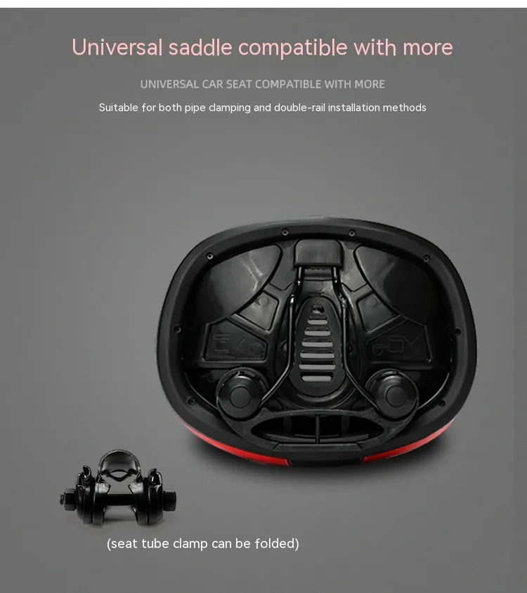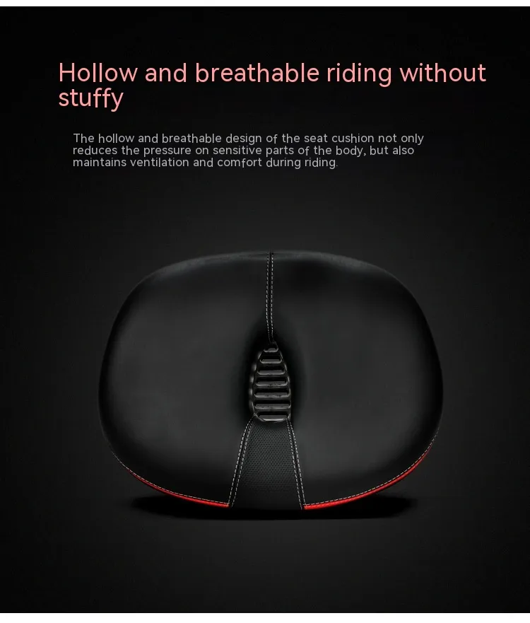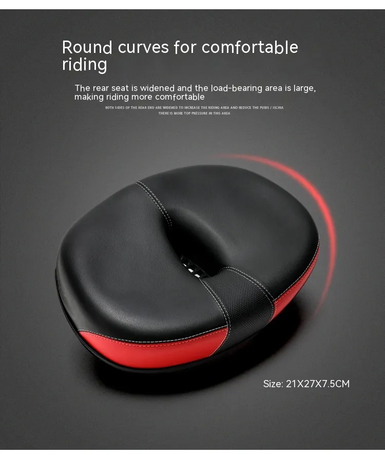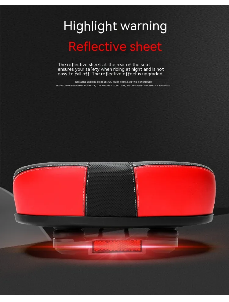 Crafted with a PU hot-stamped leather finish, it features stylish stitching, reflective safety accents, and a double-layer shock-absorbing base for smooth performance on bumpy roads. The steel bow rails ensure a strong and secure fit, while the wide seat profile (210×270mm) offers optimal support, especially for plus-size riders or those looking for premium comfort.