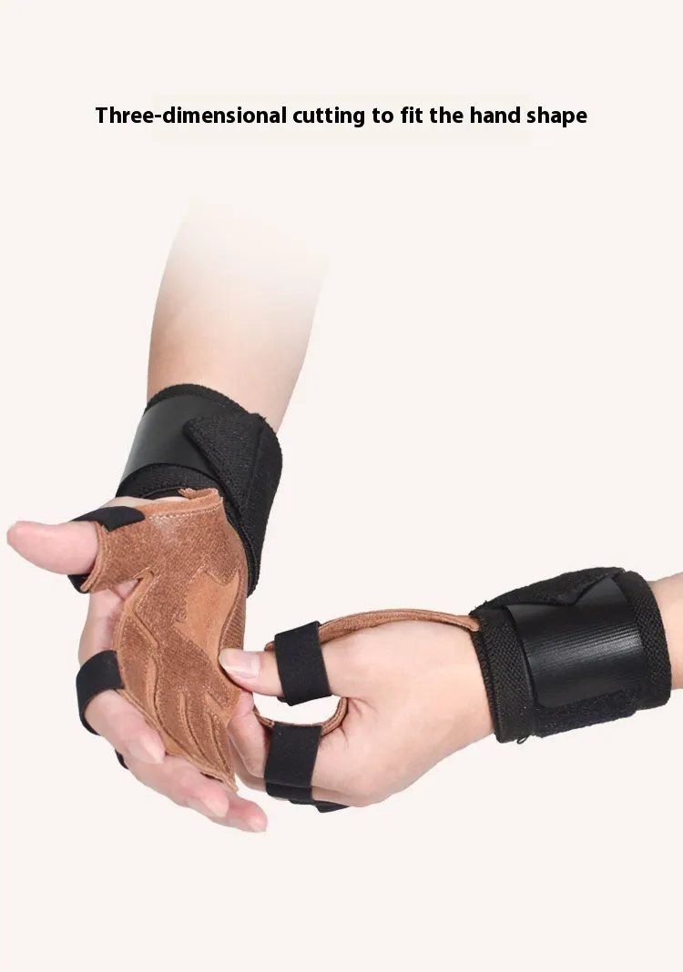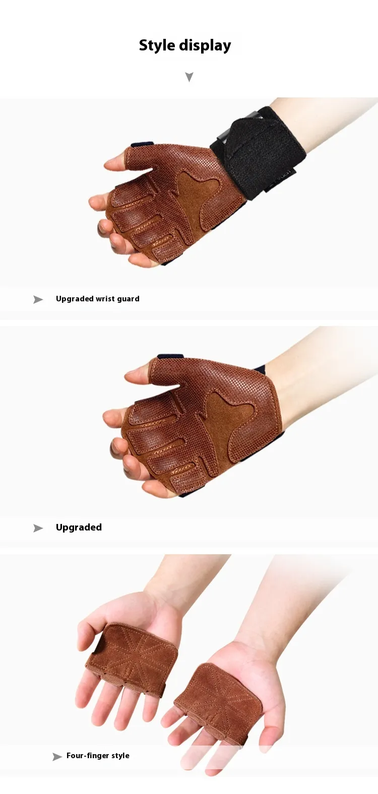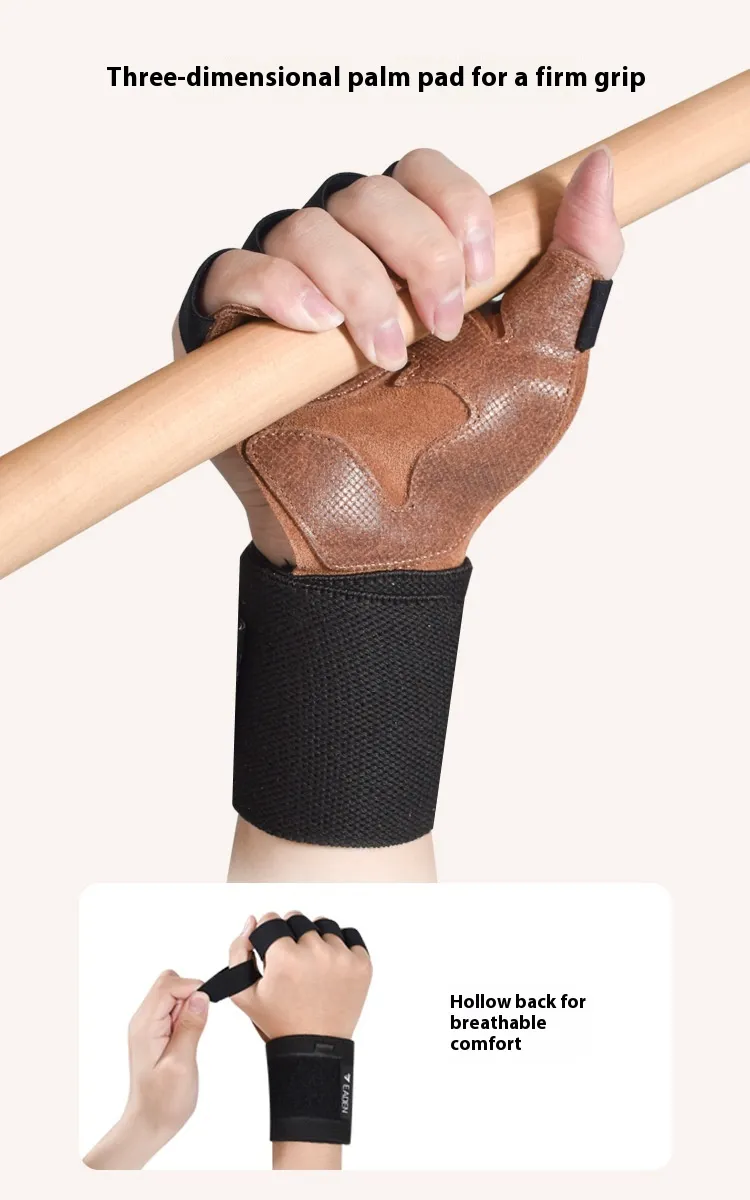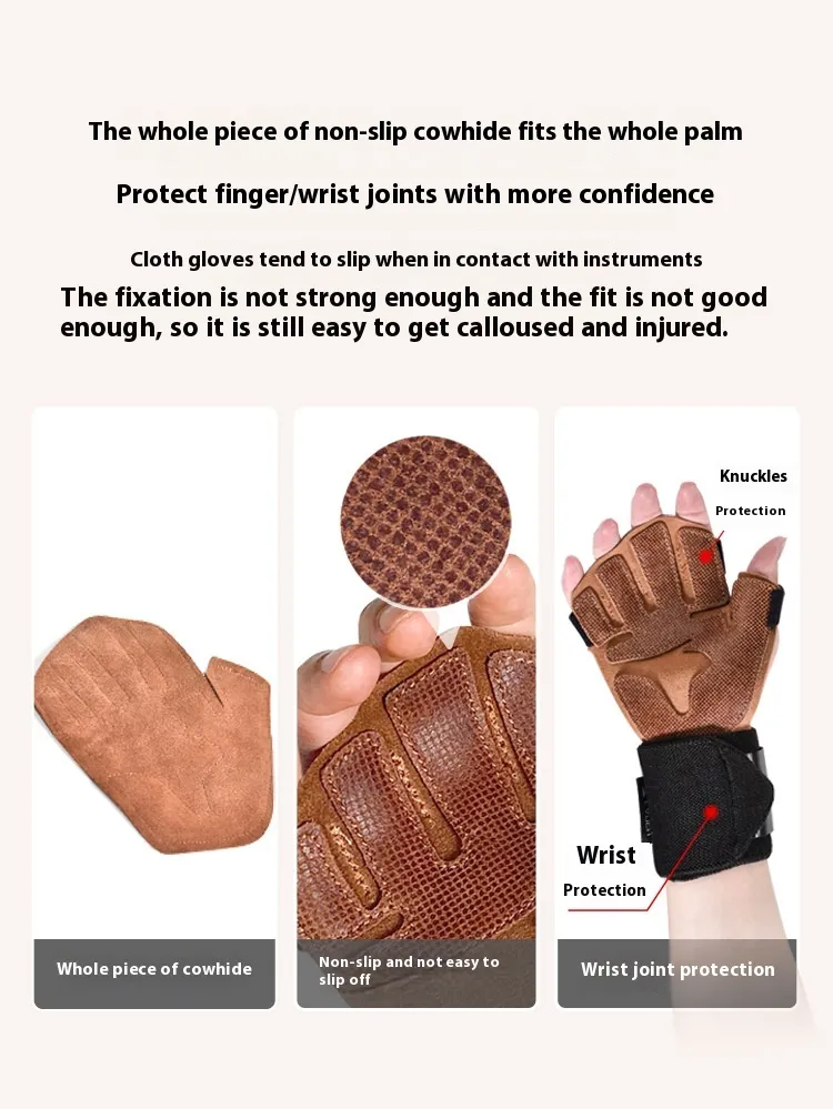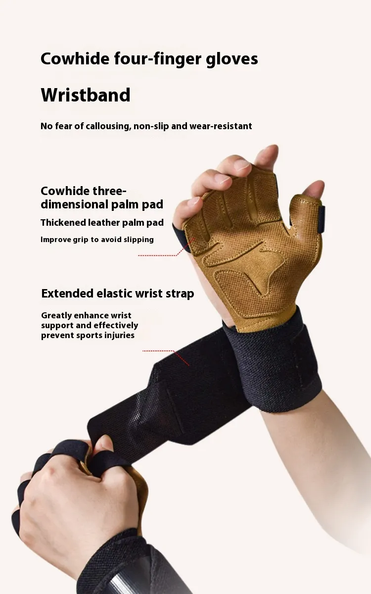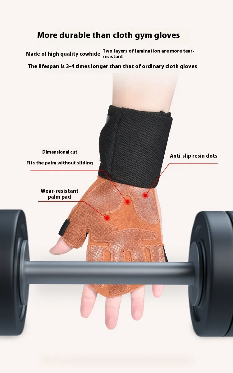 Cowhide Fitness Wrist Gloves – Anti-Slip Leather Weightlifting Gloves with Wrist Support