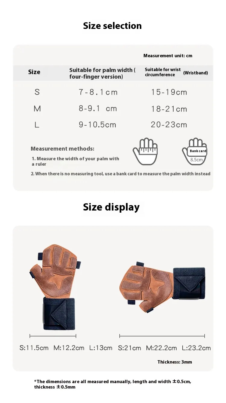 Cowhide Fitness Wrist Gloves – Anti-Slip Leather Weightlifting Gloves with Wrist Support
