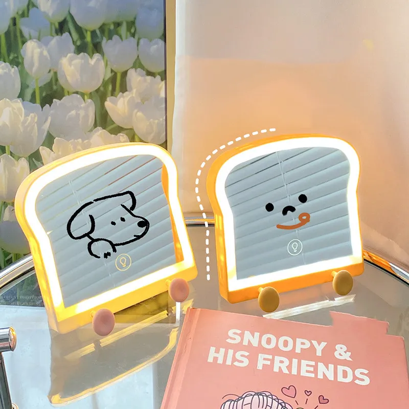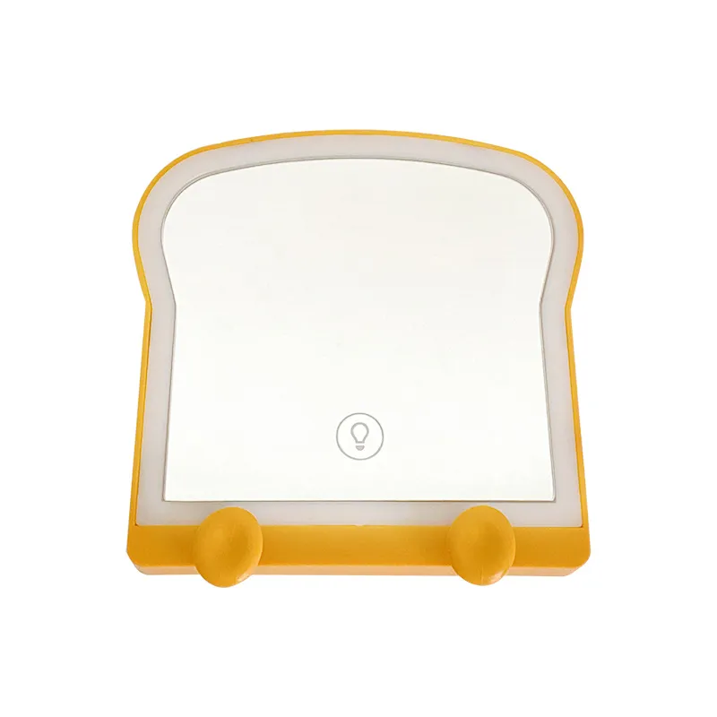 Creative LED Makeup Mirror – Toast Bread Shaped Lighted Vanity Mirror for Dressing & Beauty (USB/Battery Powered)