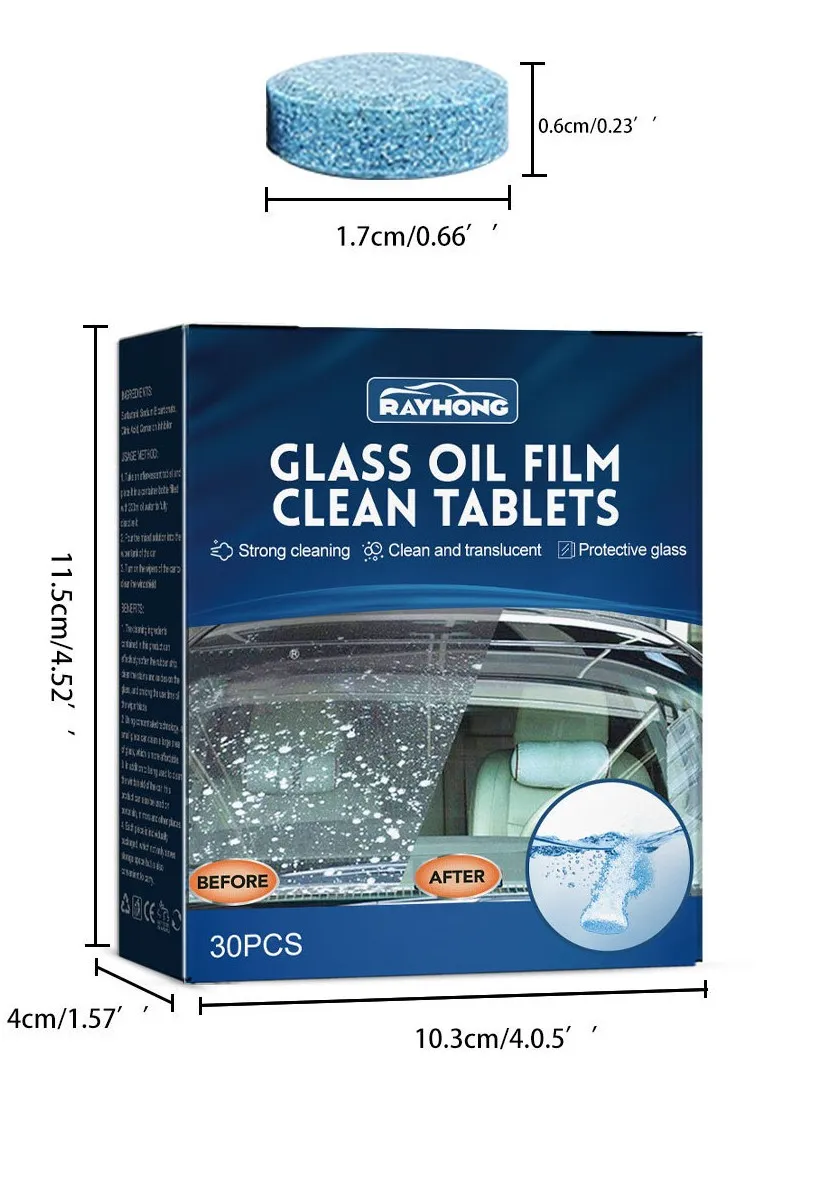 CrystalClear Car Glass Tablets – Oil Film & Dirt Remover 30pcs