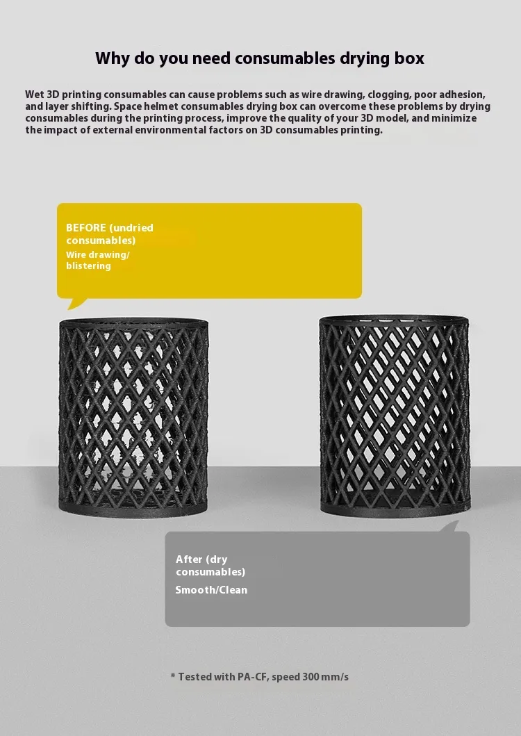 Protect your 3D printer filament from moisture and ensure smooth, high-quality printing with the CX Creative Space Helmet Drying Box. Designed specifically for 3D printing enthusiasts and professionals, this temperature-adjustable drying box prevents common issues like clogging, stringing, and layer separation caused by humid filament.