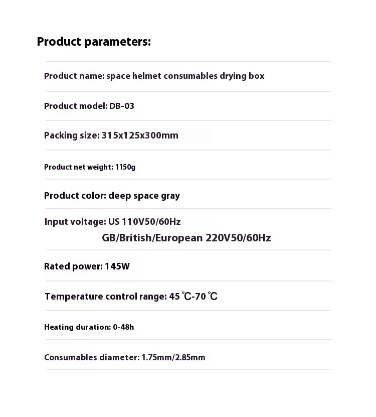 Available in multiple plug standards—including American, European, British, and National—this drying box is ready for global use. Whether you're a hobbyist or a production-level maker, the CX drying box is an essential upgrade for consistent and professional 3D printing results.