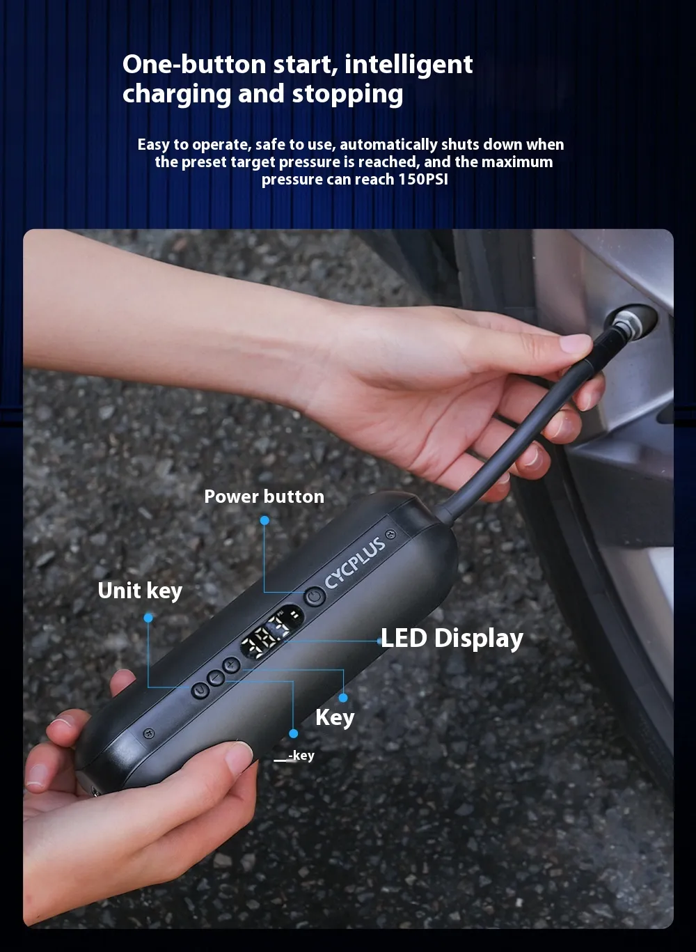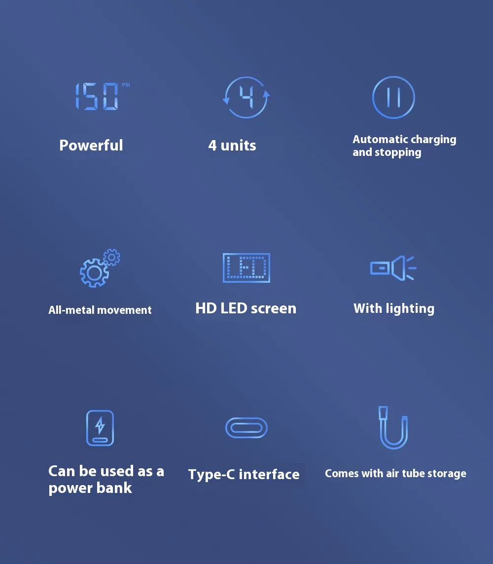 This digital electric inflator is engineered for precision, convenience, and portability. Whether you're preparing for an adventure or handling an unexpected flat, it provides a simple and powerful solution for quick inflation wherever you go.