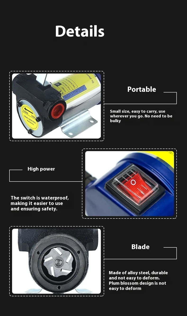 Ideal for automotive, industrial, and agricultural settings, this pump simplifies oil handling and maintenance tasks. From refueling heavy machinery to circulating lubricants in industrial equipment, it delivers dependable performance while minimizing spillage and operational downtime.