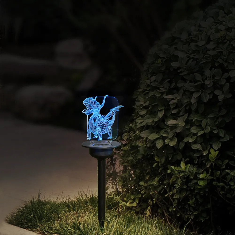 Enhance your outdoor spaces with these decorative solar LED garden lamps. Crafted from durable acrylic and available in playful designs—from dinosaurs and owls to love hearts and dragons—these lights create a magical ambiance in gardens, patios, and walkways.