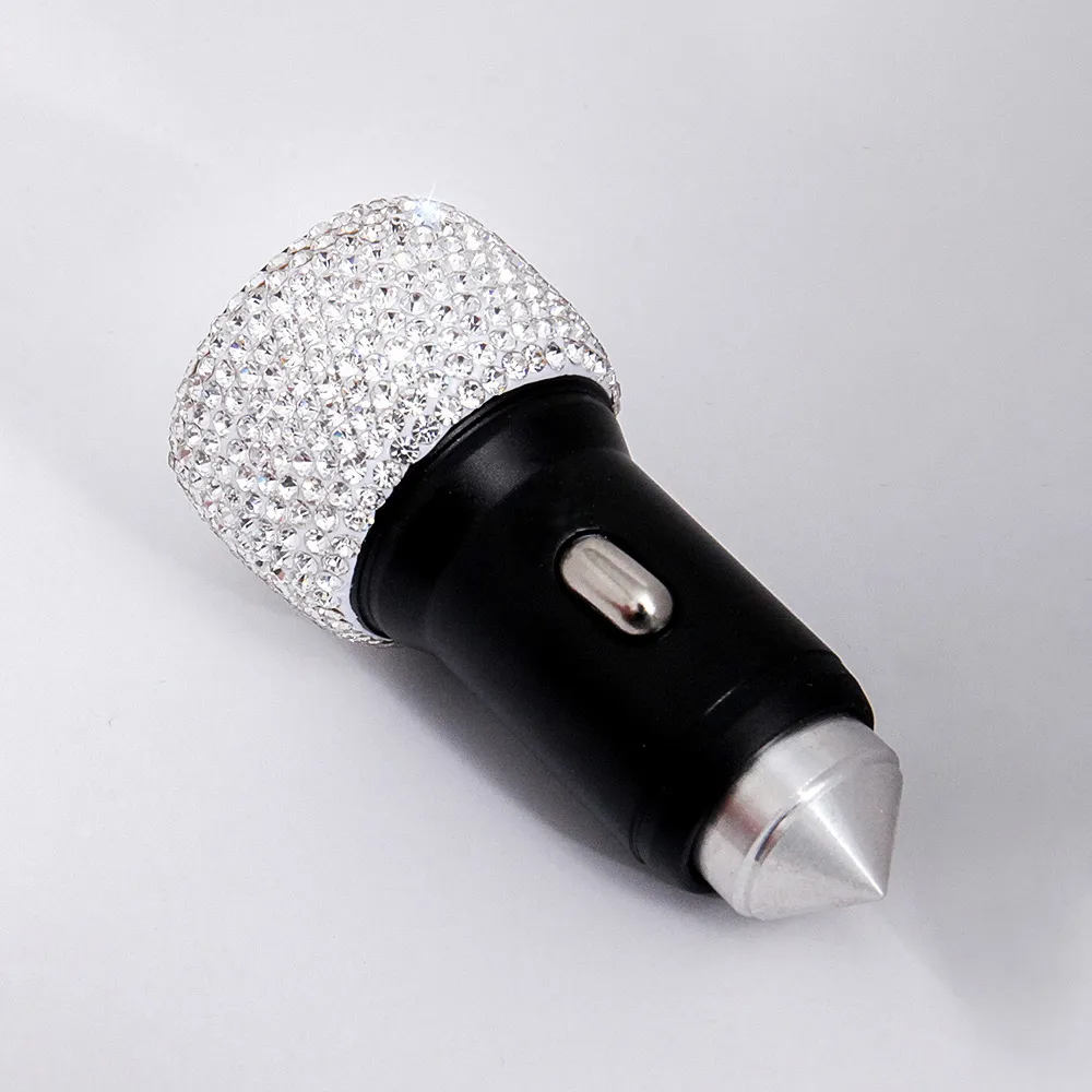 Diamond Car Charger with Safety Hammer – Dual USB Fast Charging