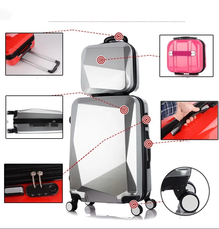 Diamond Pattern Hard Shell Trolley Luggage β 20 ABS Travel Suitcase with USB Port & Swivel Wheels