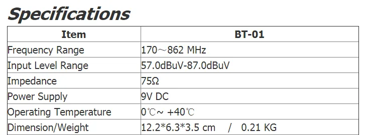 Input level range: 65-95dBuv