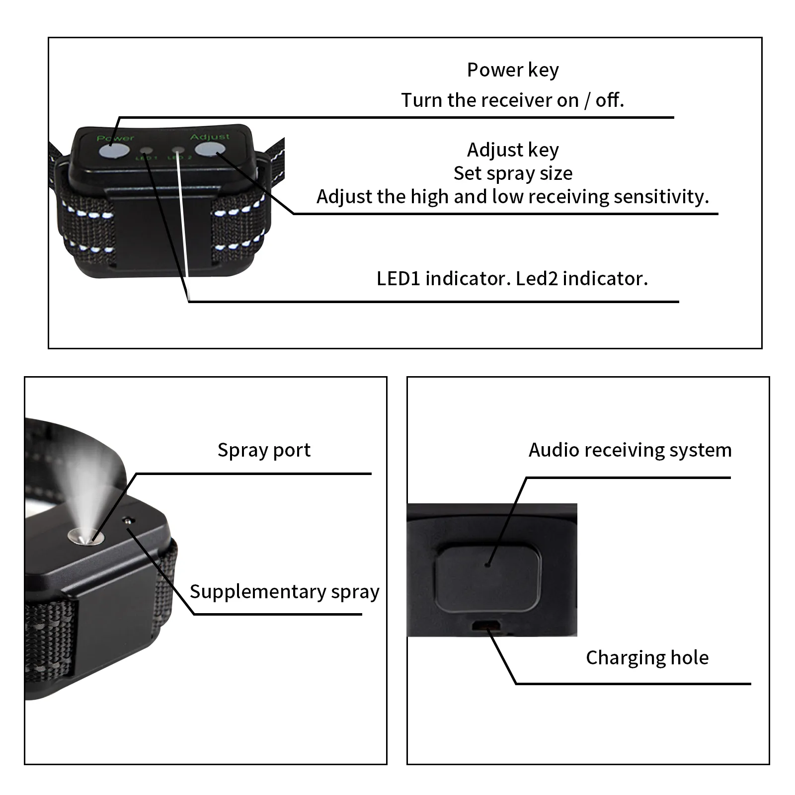 Start by charging the collar fully before first use. Once ready, adjust the strap so it sits comfortably around your dog’s neck, leaving a small gap for movement. Position the spray nozzle facing upwards toward the snout area.