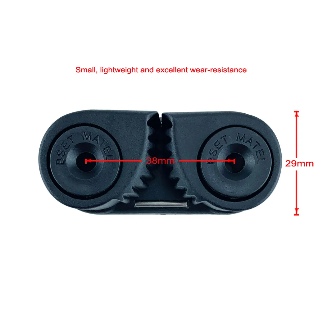 Crafted from tough nylon and engineered with precision, this rope clamping device features a double-ball mechanism for superior grip and load distribution. Its compact dimensions—64mm wide and 28mm high—along with 38mm center-to-center holes, make installation quick and secure. Whether you're working on a sailboat, setting up a canopy, or managing gear in high-stress environments, this clamp delivers reliable holding power.