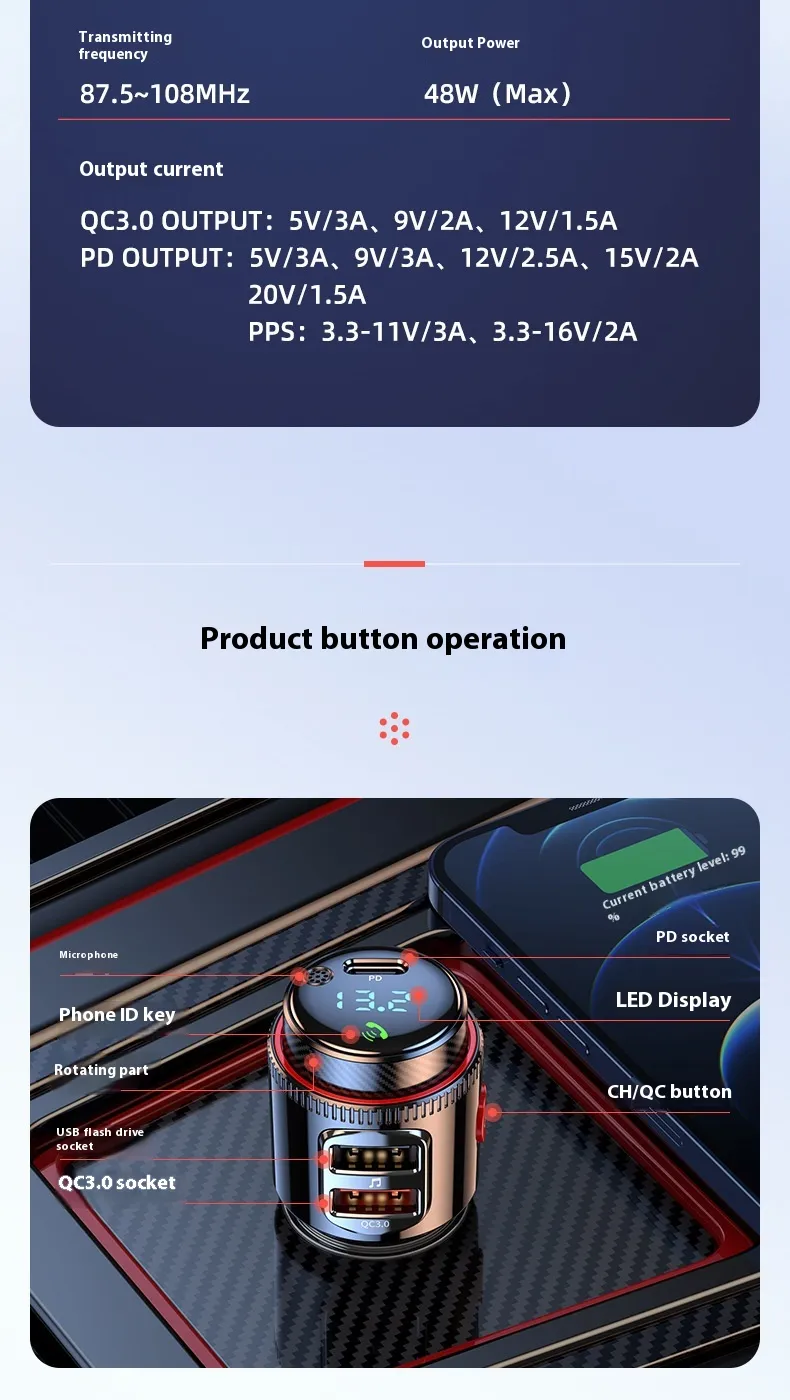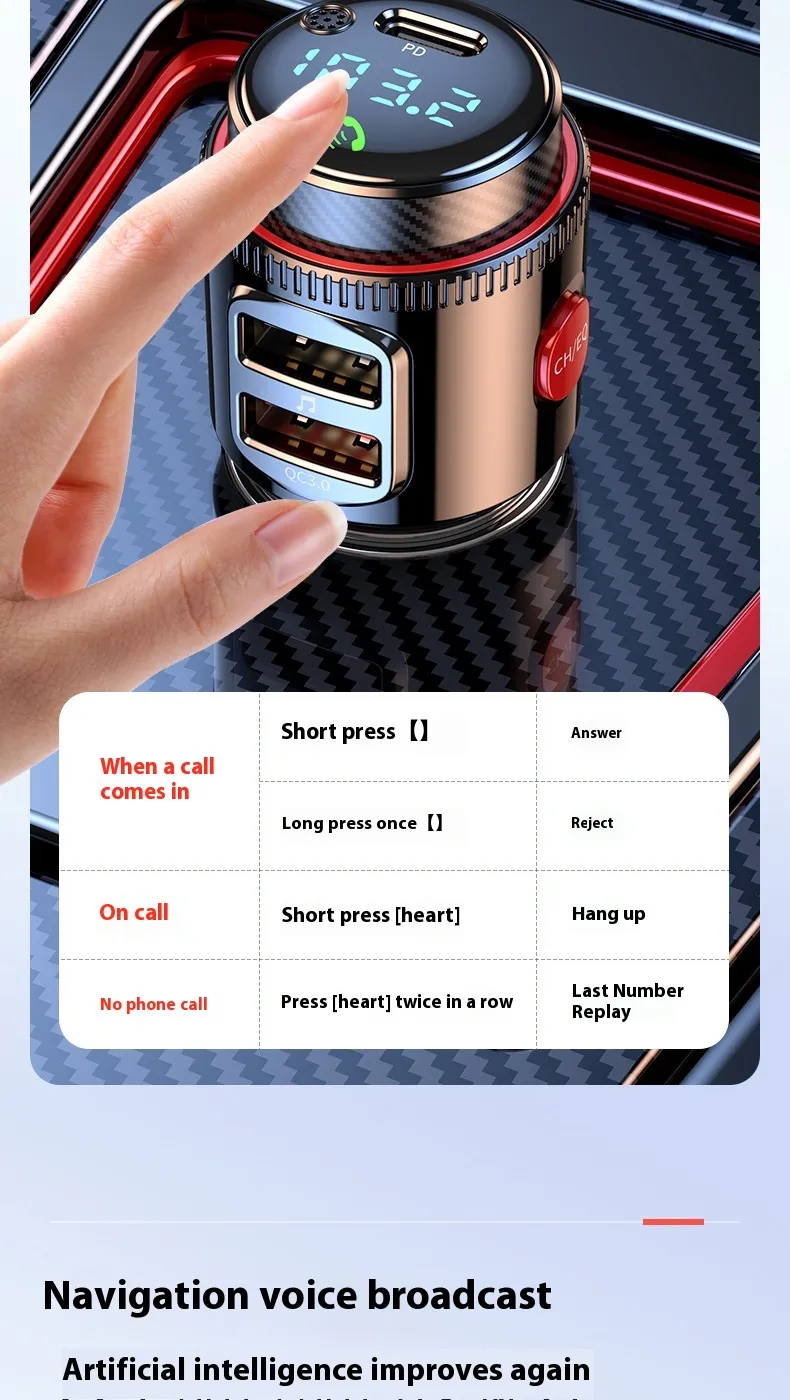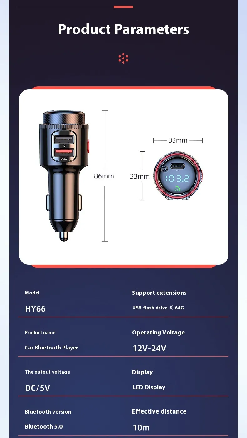 Made from durable ABS material and compact at just 1.2 inches, the DriveBeat Pro is easy to install and unobtrusive. It also supports PD fast charging (HY-66 model), keeping your devices powered while you enjoy uninterrupted music. Its sleek and modern design fits seamlessly into any car interior.