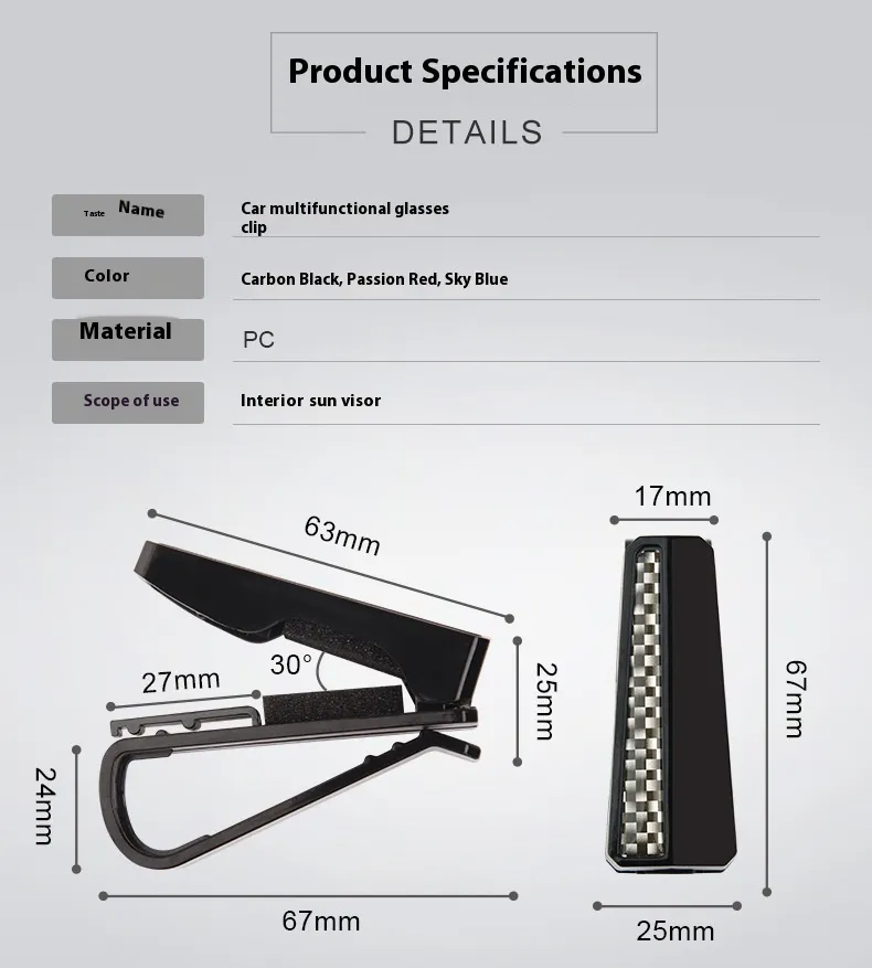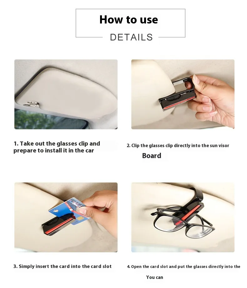 Keep your car essentials organized and within easy reach with the Driverβs Smart Clip. This multifunctional sun visor accessory securely holds your sunglasses, parking tickets, cards, and small documents, turning your car into a tidy and efficient space. Crafted from durable PC material, itβs built to last while maintaining a sleek, modern look.