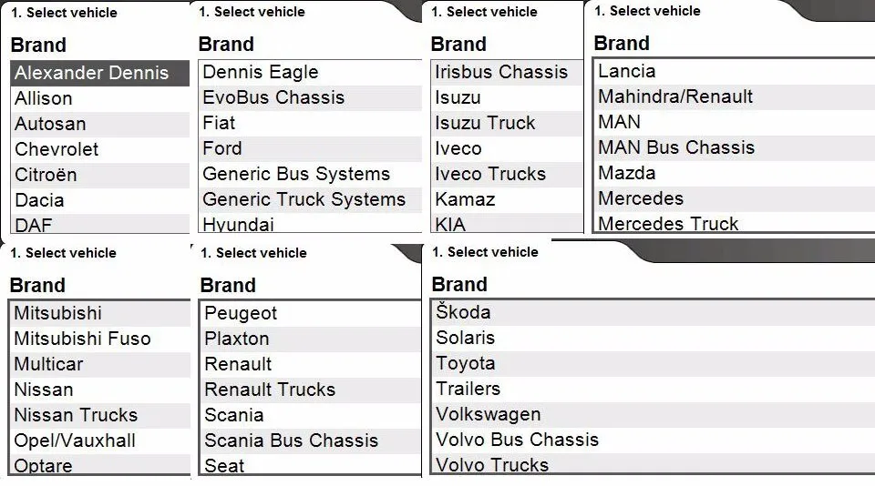 Trucks,for Kia,for Man,for Man bus chassis,for Ma.zda,for Mer-ced.es,for Mit-subishi,for N-iss.an,for Opel/Vauhall,for Peug.eot,for