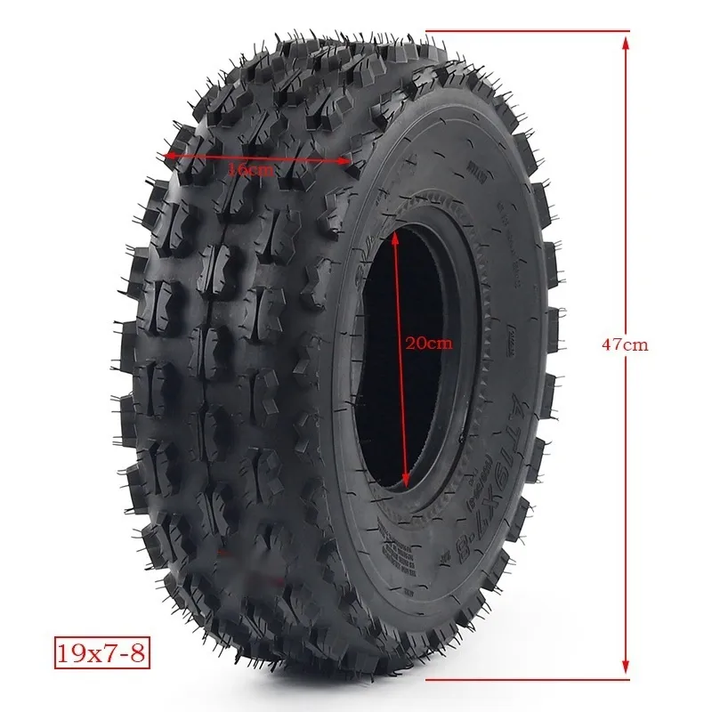 The front tire (19x7-8) and rear tire (18x9.5-8) are precision-built to balance strength and flexibility. With a lightweight yet sturdy build, they absorb shocks effectively, providing a comfortable and controlled ride even on uneven surfaces. The vacuum design also reduces puncture risks, allowing longer rides without frequent maintenance.