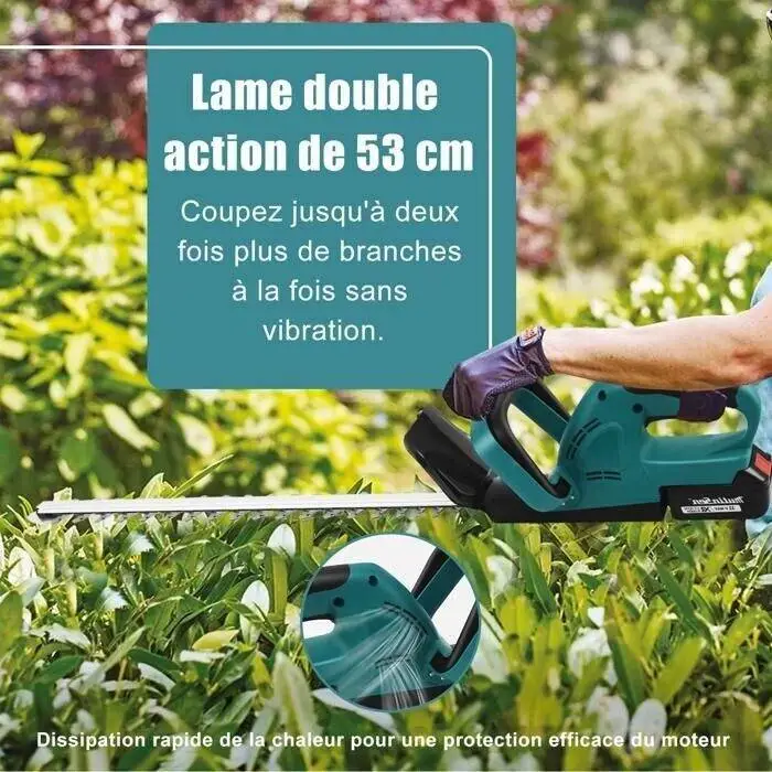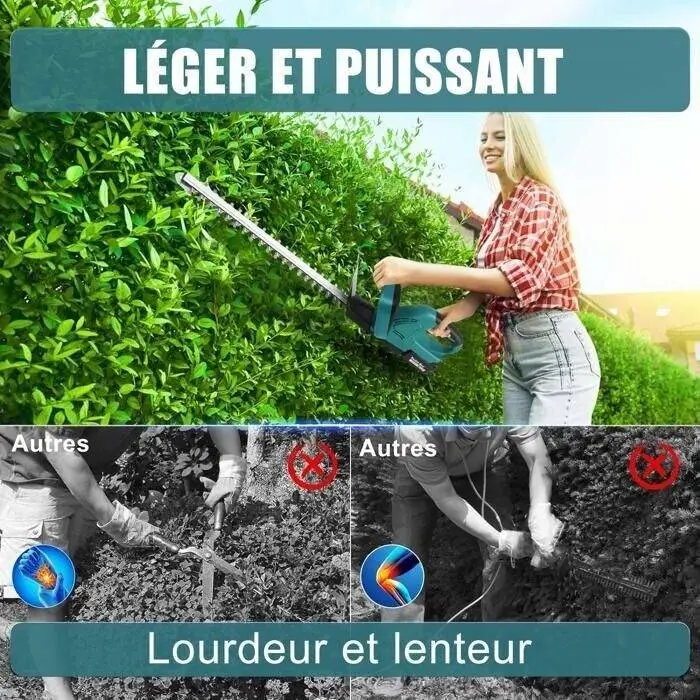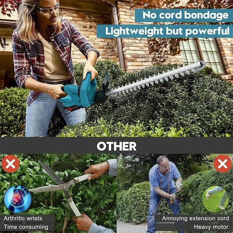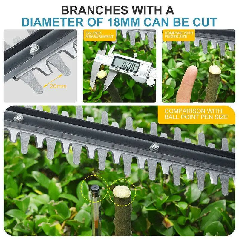 Equipped with a high-performance lithium battery, this trimmer delivers extended runtime without the hassle of cords. The vented motor design prevents overheating, ensuring long-lasting durability. Whether you're trimming hedges, bushes, or small tree branches, this tool makes the job effortless.