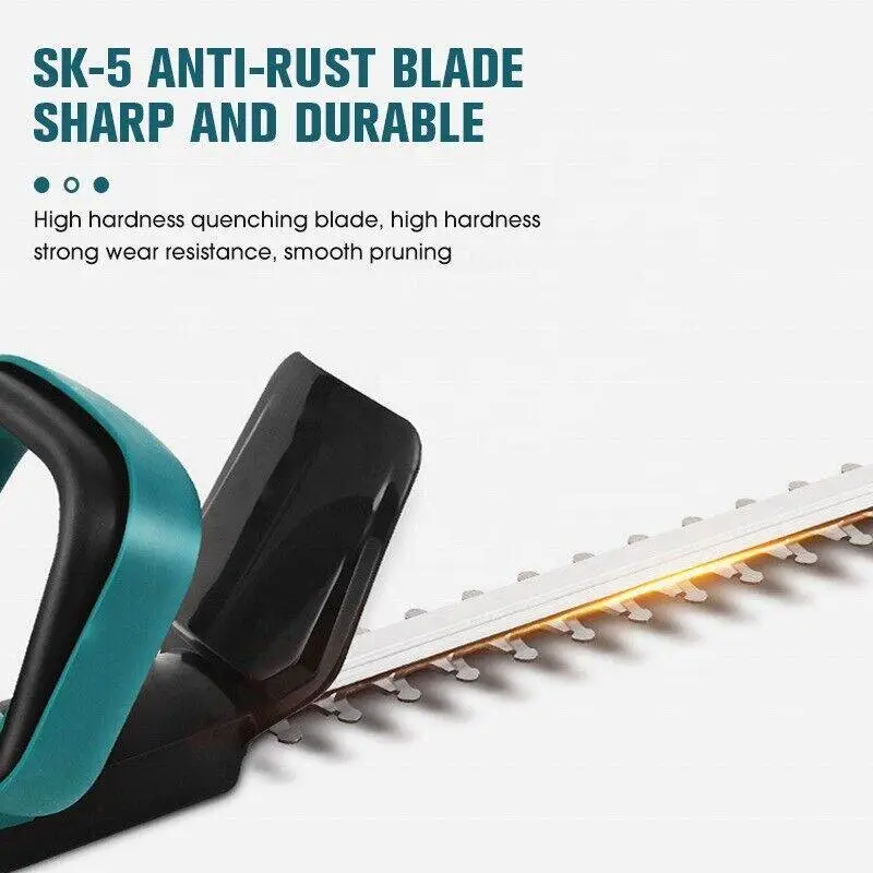 Transform your gardening experience with the Electric Cordless Trimmer, designed for precision and ease. This powerful hedge trimmer features a manganese steel double-edged blade, ensuring smooth and efficient cutting. Its ergonomic rubberized handle provides a firm grip, making long trimming sessions comfortable.