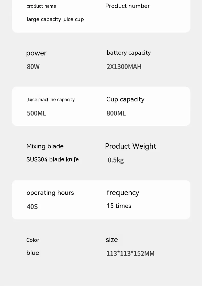Electric Portable Wireless Juicer Cup – Small 800ML Juice Extractor with Handle & Charging Cable