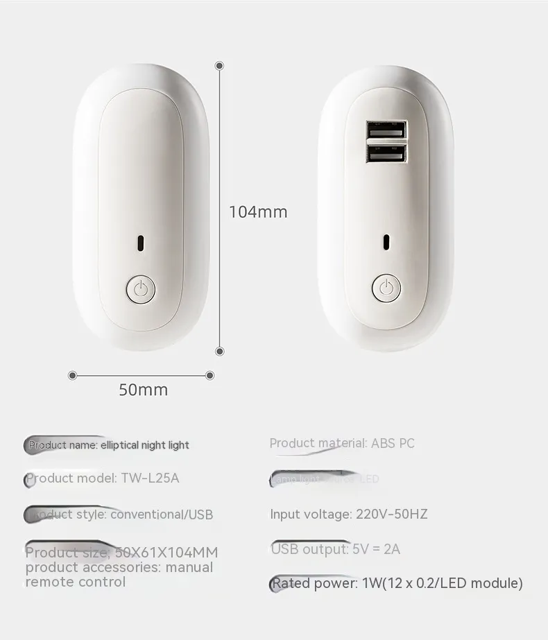 The Elliptical Night Lamp is a sleek, compact bedside light designed to combine soft LED illumination with dual USB charging functionality. Perfect for bedrooms, offices, or living spaces, it keeps your devices powered while creating a warm, comfortable ambiance for reading or relaxing.