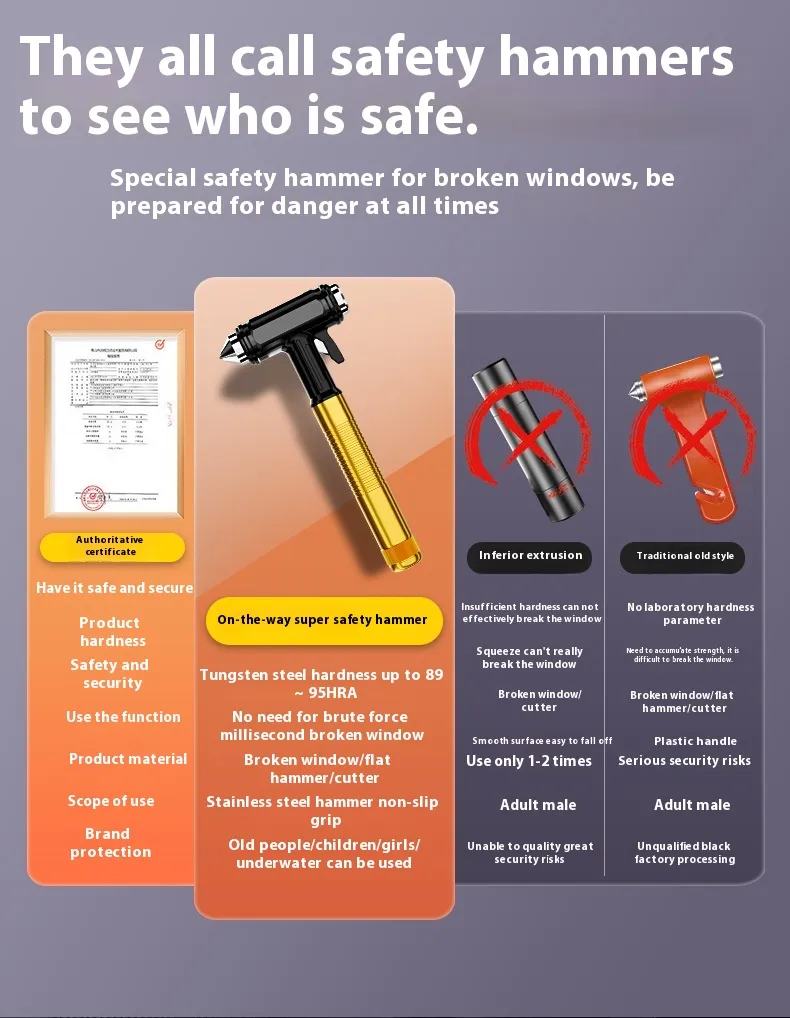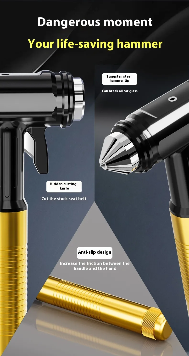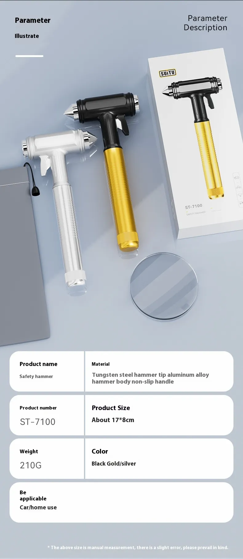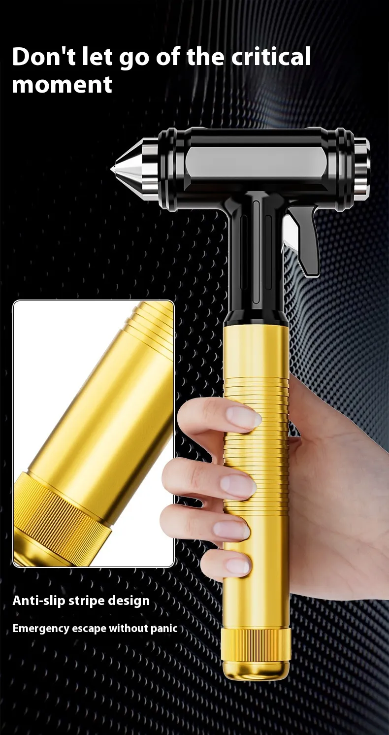Made from high-strength 45# carbon steel, this safety hammer combines durability with efficiency. Despite its compact size, it delivers powerful impact to shatter windows instantly. Available in sleek silver white and black gold, it is lightweight, easy to carry, and simple to store in your car for quick access.