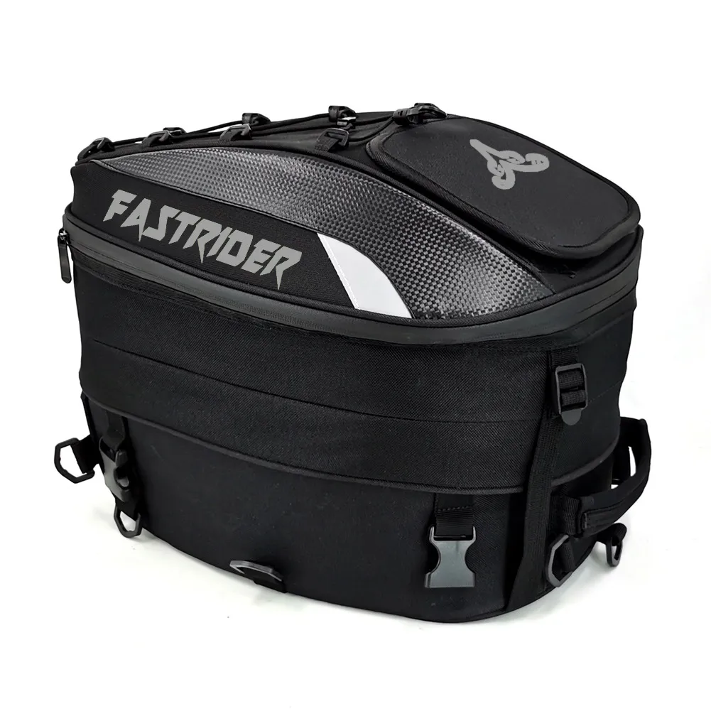 Upgrade your riding gear with this expandable motorbike tail pack, designed for both short commutes and long-distance touring. Made with carbon fiber PU leather and Oxford cloth, it combines toughness with a sleek finish, ensuring durability and style.