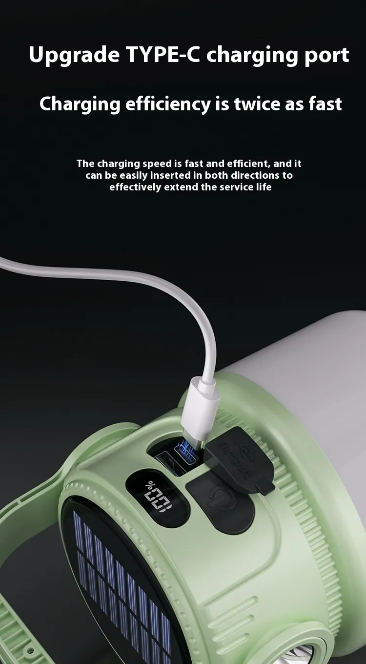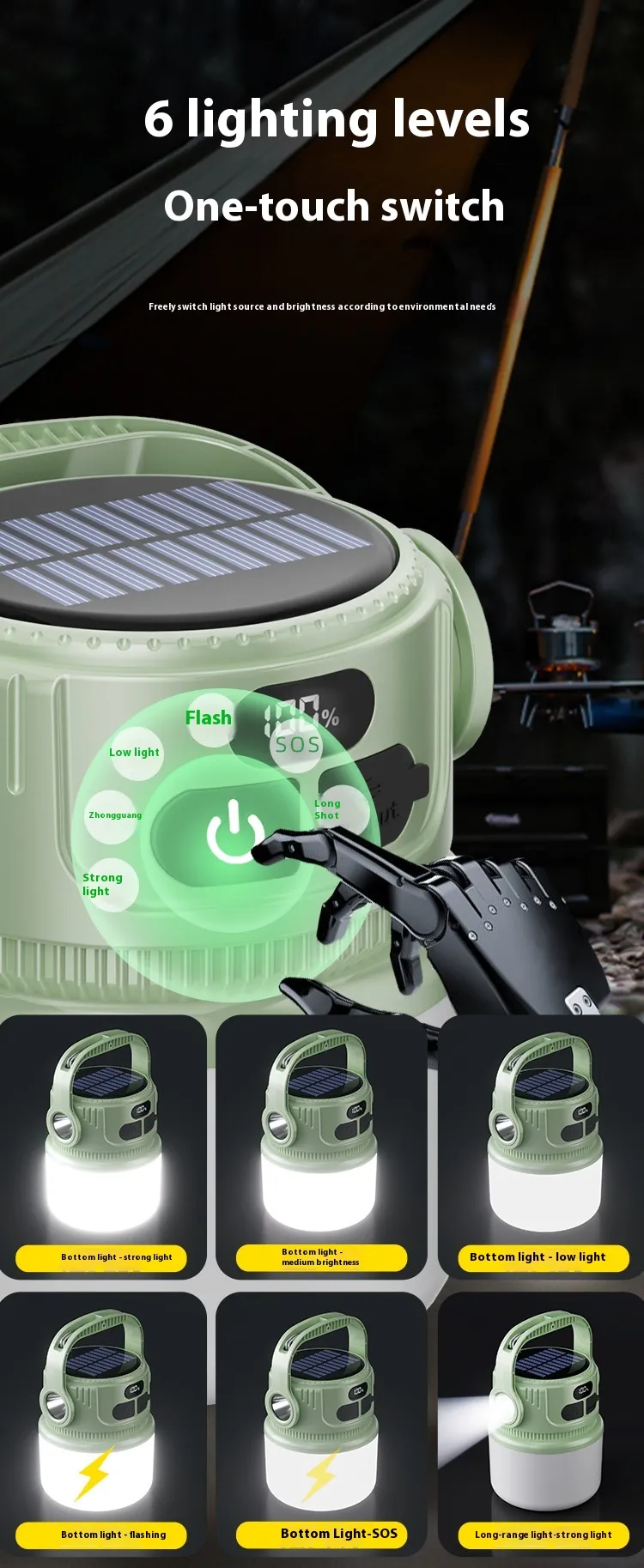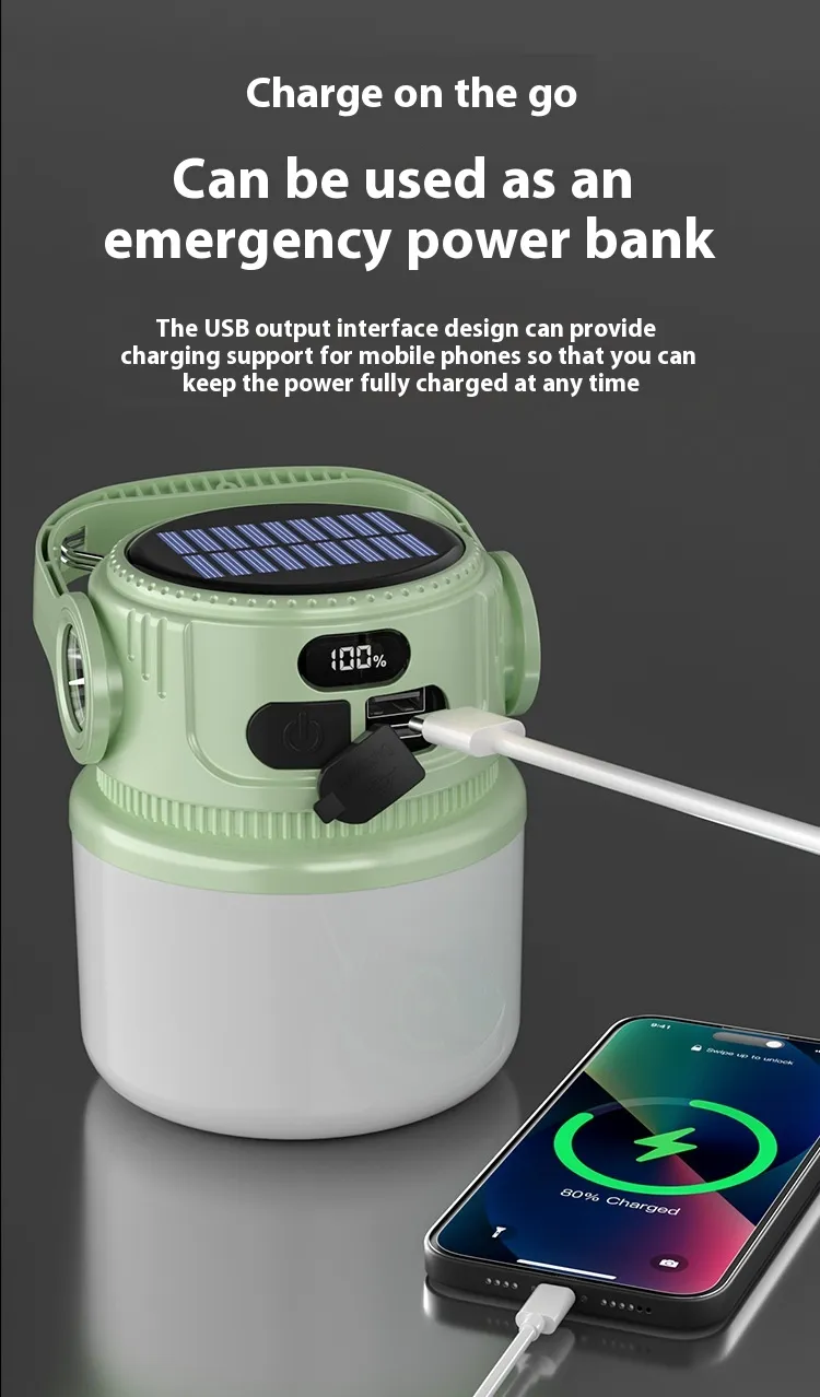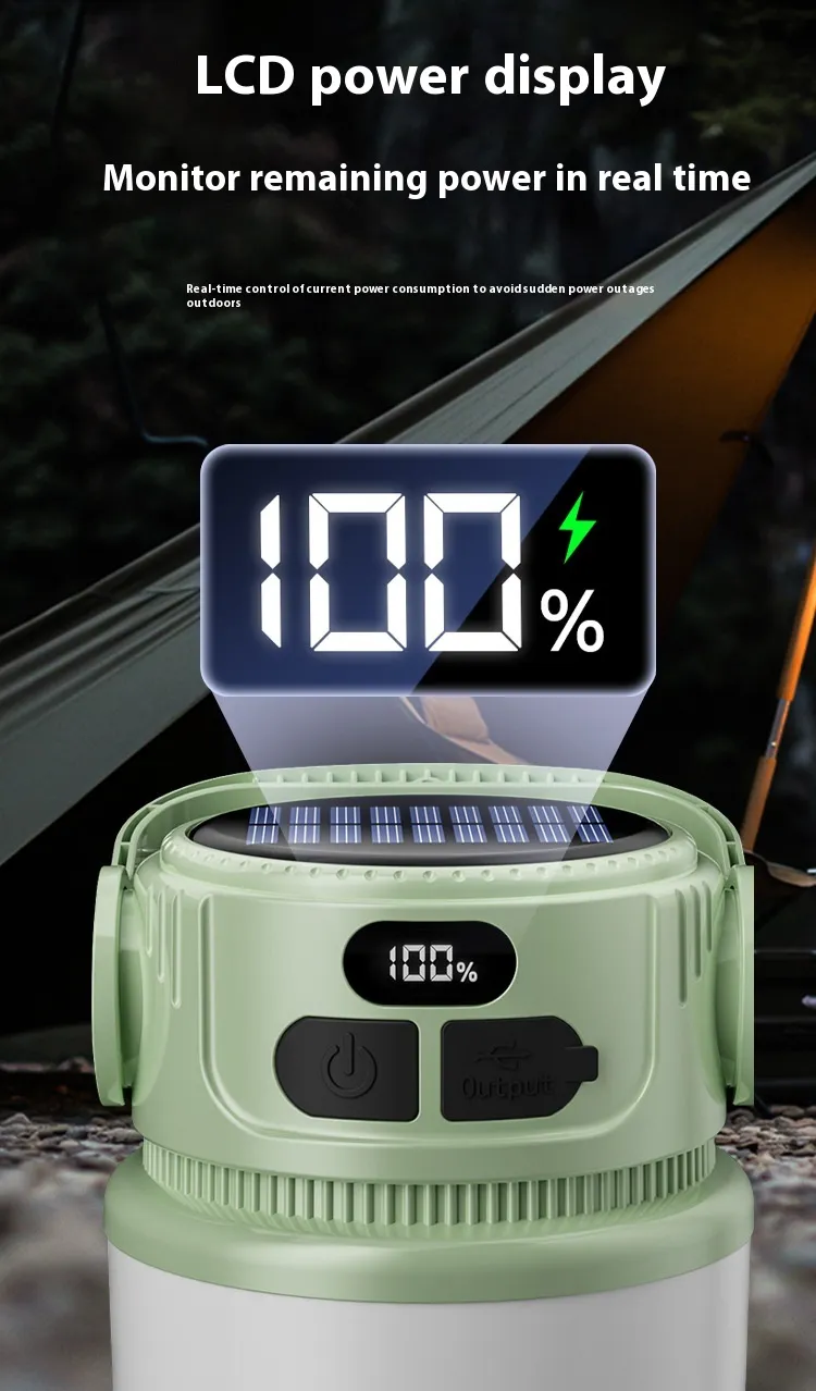 Made from sturdy ABS and featuring multiple lighting options, this lantern offers high, medium, low, flash, SOS, and focused beam modes. A built-in hanging hook and a digital energy display allow easy placement and real-time battery monitoring for hassle-free use.