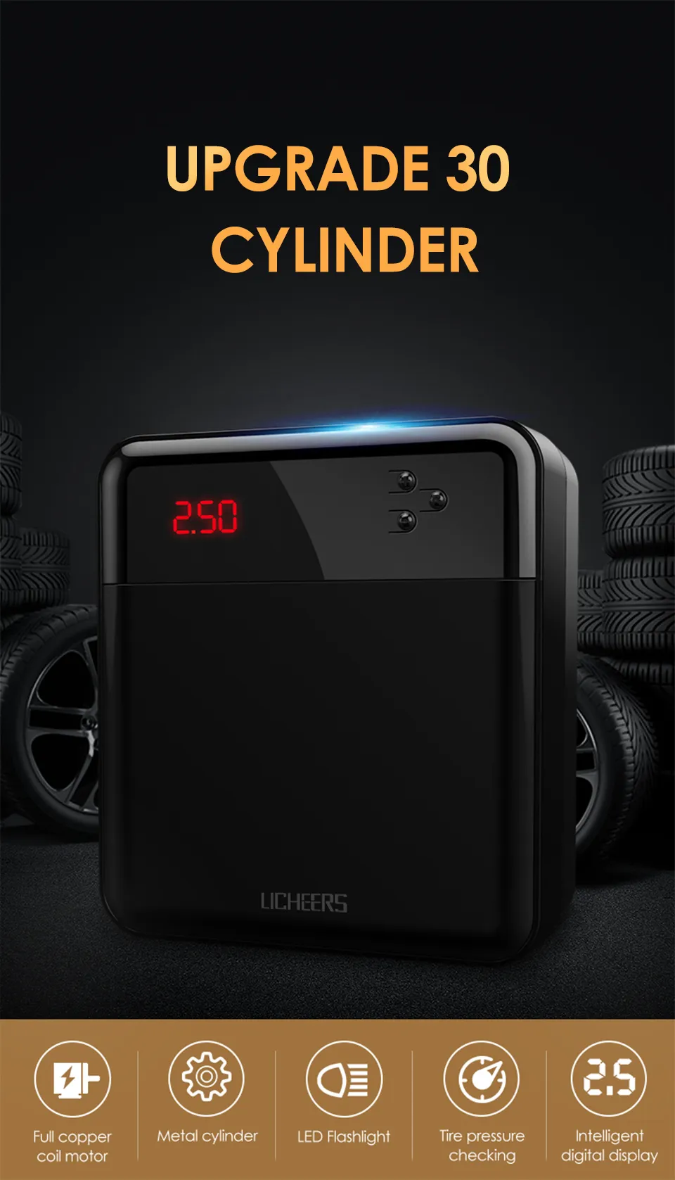 Inflate your tires quickly and confidently with the Fast Inflate 150PSI Car Tire Pump, a high-powered digital compressor built for speed, precision, and portability. Featuring a 30-cylinder motor and an impressive airflow rate of ≥35L/min, this compact inflator fills standard tires in minutes — ideal for cars, motorcycles, bikes, and sports equipment.