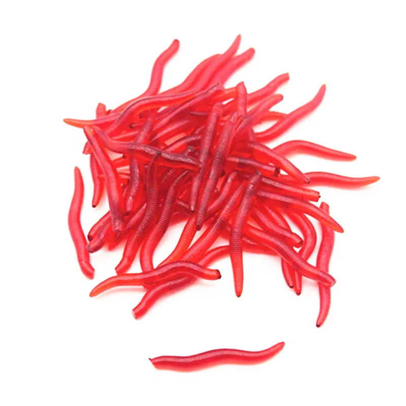 50pcs / lot 3.6cm Simulation Earthworms Red Worms Artificial Fishing Lure Tackle Tackle Soft Realistic Fish Smell Lures FA-160