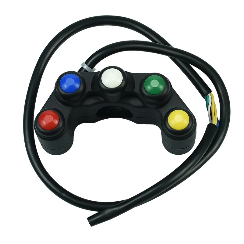 Upgrade your motorcycle, electric vehicle, or tricycle with this versatile five-function combination switch. Crafted with durable plastic and vibrant five-color buttons, it allows seamless control of your horn, headlamp, auxiliary lights, and other vehicle accessories. Its compact size (9.4×3.9×4.8cm) makes installation easy without cluttering your handlebar.