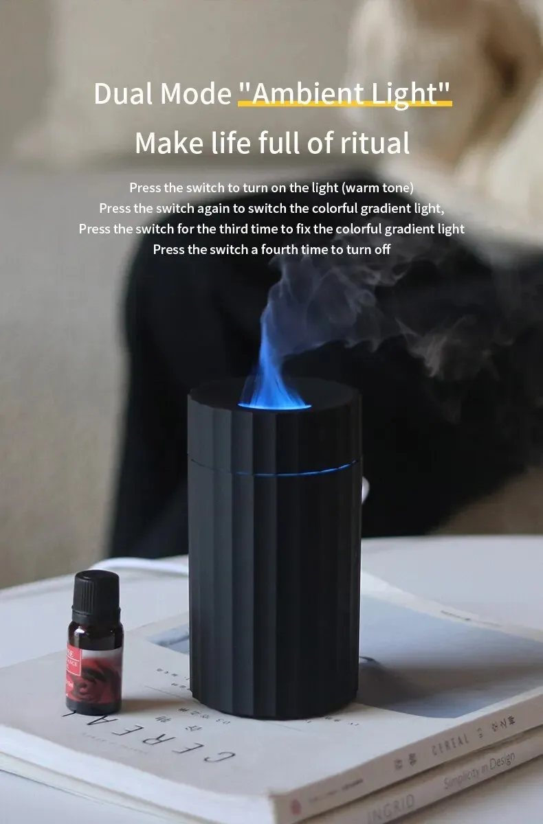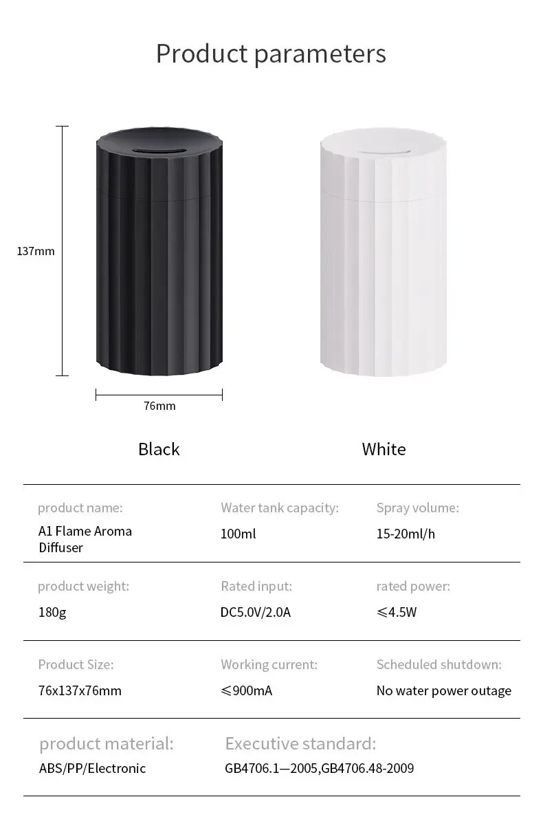 Powered by a DC5.0V input, the diffuser is easy to charge via USB and includes built-in safety features like an intelligent chip for water shortage protection. Whether you want to freshen up your car, improve your sleep environment, or simply enjoy a calming flame-like glow, this versatile diffuser is a must-have for wellness and comfort.