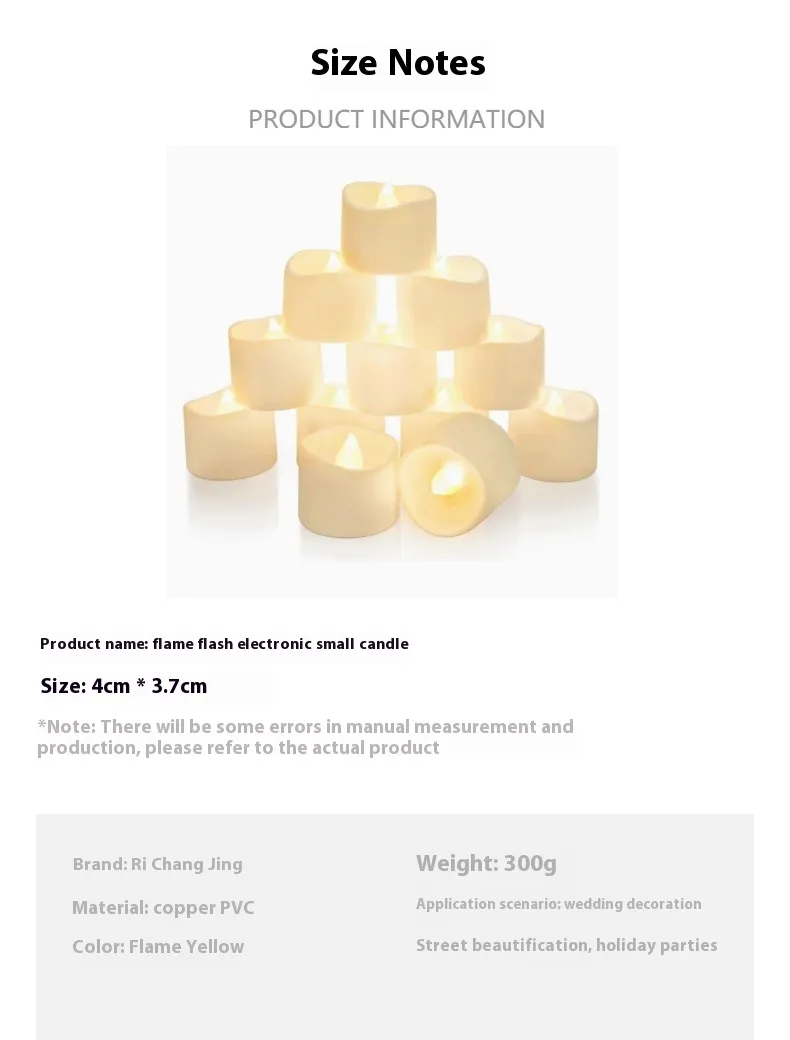 Crafted from durable plastic and rated IP42 for protection against minor splashes, these candles are ideal for indoor use in auditoriums, dining rooms, or party venues. The realistic flickering effect adds charm to any setting, combining practicality with decorative appeal.