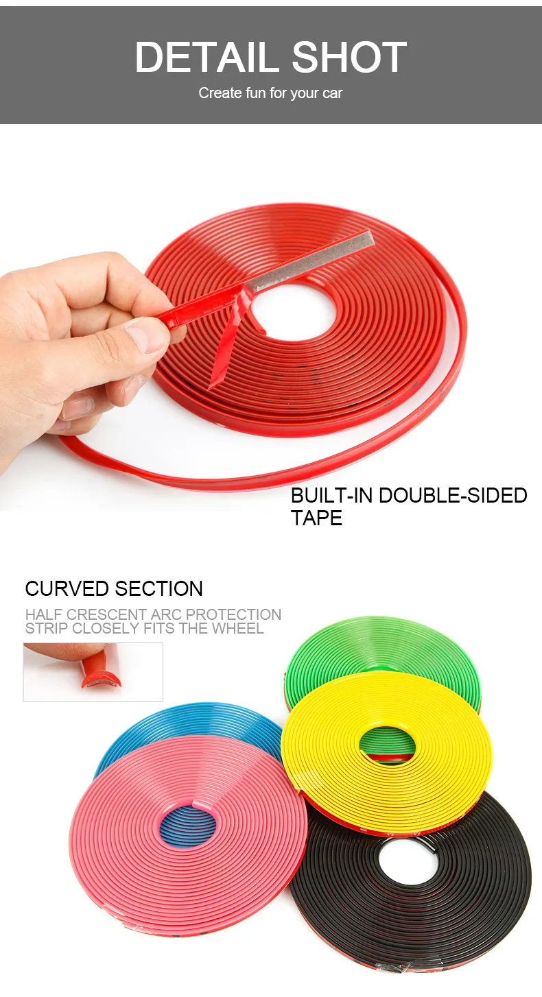 Safeguard your alloy wheels in style with the FlexGuard Universal Wheel Rim Protector Strip β 8M Alloy Rim Guard. Designed for easy installation and maximum durability, this flexible strip helps prevent scratches, scuffs, and curb damage on your carβs wheels while adding a touch of vibrant color to your vehicle.