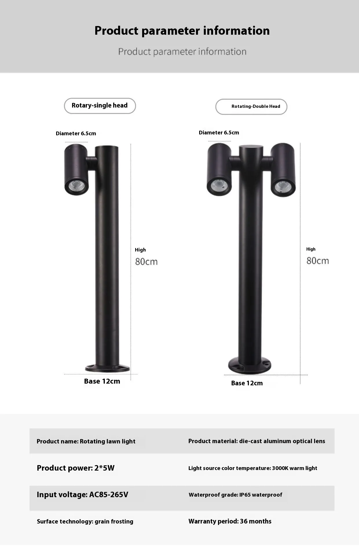 Built with high-quality aluminum, this lamp combines durability with elegant design. Choose between single-head (5W) or double-head (10W) versions, both emitting warm light to create a cozy and inviting atmosphere in gardens or courtyards.