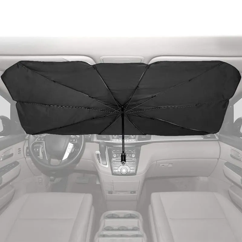 Protect your vehicle from harmful UV rays and heat buildup with this Foldable Car Windshield Sun Shade Umbrella. Designed to fit most vehicles, this innovative sunshade opens and folds just like a regular umbrella, offering quick installation and compact storage. Its reflective silver coating effectively blocks sunlight, keeping your car's interior cool and extending the lifespan of your dashboard and upholstery.