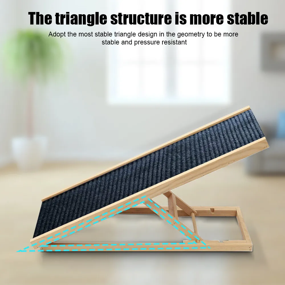 The timber build adds strength while maintaining a manageable weight. Combined with rubber stoppers, it stays put during use. That stability reduces wobble, which is often what scares pets off using ramps in the first place.