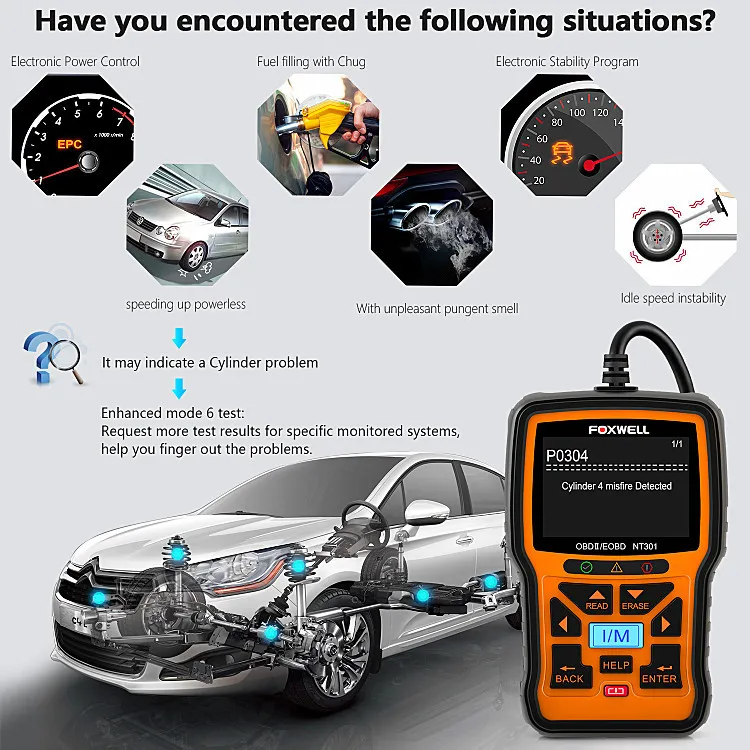 Foxwell NT301 Plus OBD2 Scanner & Battery Tester – 2025 Upgrade