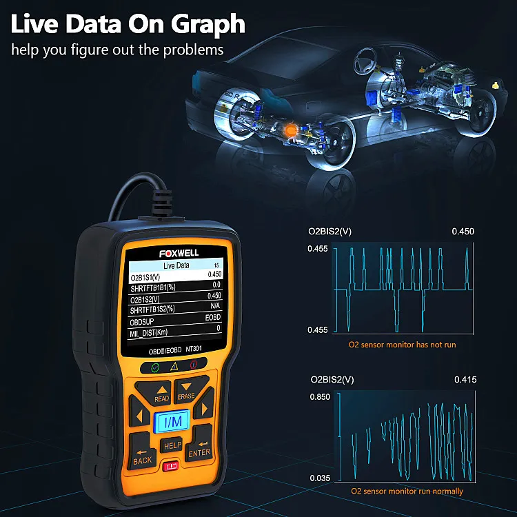 Equipped with a 2.8” TFT color screen, the NT301 Plus delivers real-time data, freeze frame information, and MIL status clearly and quickly. It supports a wide range of protocols including J1859-41.6, J1850-10.4, ISO9141, KWP2000, and CAN, ensuring compatibility with most 1996 and newer vehicles. It operates efficiently between 8–18V via your car’s OBD2 port and functions well in both warm and cold climates, with an operating temperature range of 0 to 60°C.