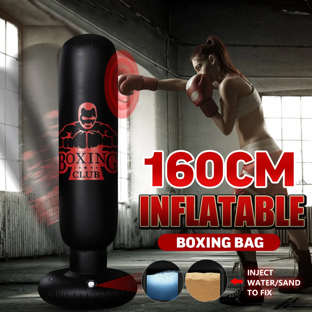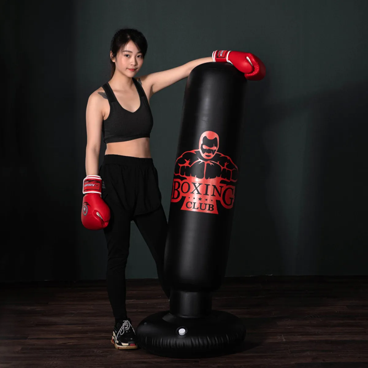 Standing at a height of 160 cm (62.99 inches), the Free Standing Inflatable Boxing Punch Bag comes with a thickened base that can be filled with water or sand to ensure stability during intense punching and kicking sessions. Its lightweight, inflatable design makes it easy to set up, deflate, and store, making it a great option for those with limited space.