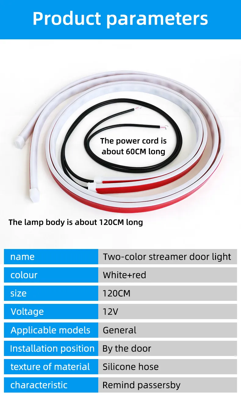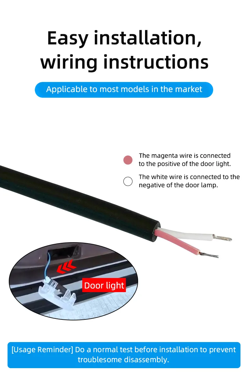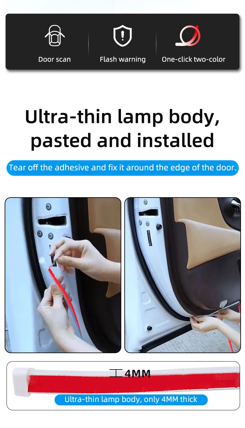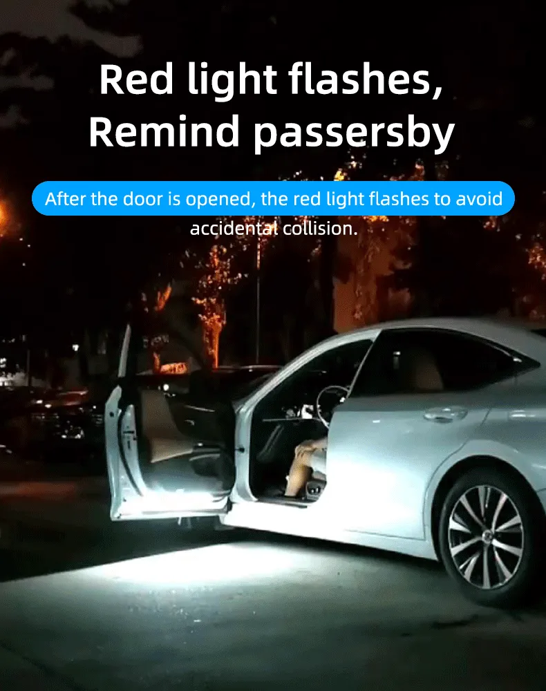 Crafted from durable silicone, the lamp is flexible, heat-resistant, and long-lasting, ensuring reliable performance in all driving conditions. Its dual-color design provides a modern aesthetic while improving visibility around the car door area, helping prevent accidents when entering or exiting your vehicle at night.